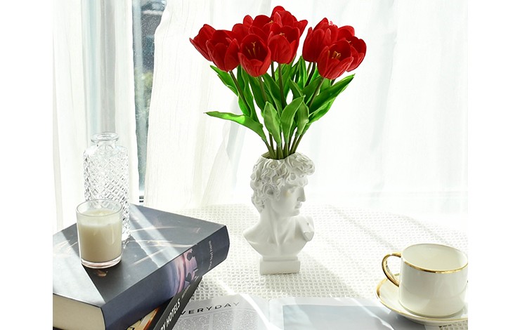 Mandy's 12pcs Red Partially Open Artificial Flowers Tulip Silk Fake Flowe