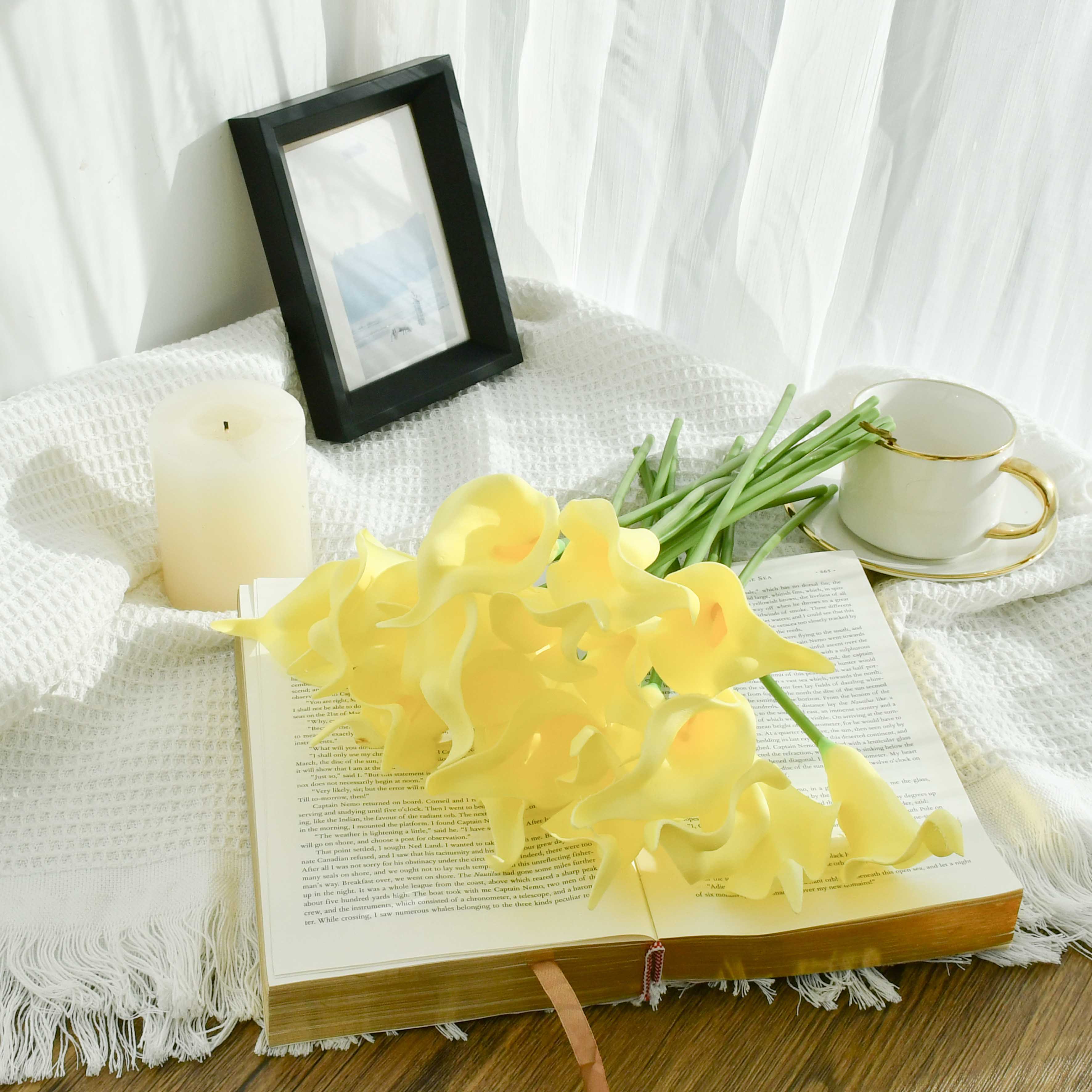 Mandy's 20pcs Light Yellow Flowers Artificial Calla Lily Silk Fake Flowers 13.5