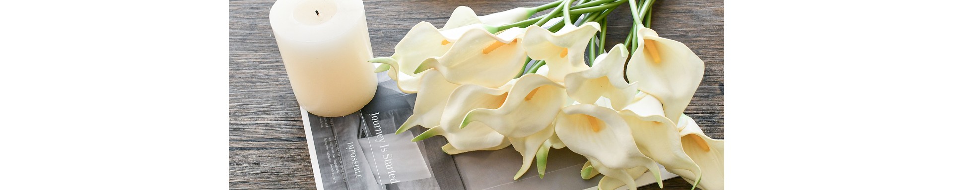 Mandy's 20pcs Light Yellow Flowers Artificial Calla Lily Silk Fake Flowers 13.5