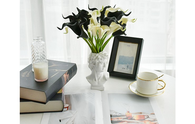 Mandy's 20pcs Black and White Fake Flowers Artificial Calla Lily 13.4"