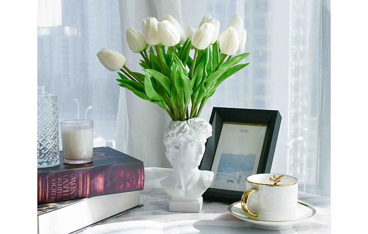 Mandy's 20pcs White Flowers Artificial Tulip Silk Fake Flowers 13.5"