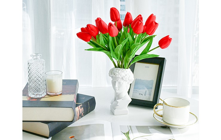 Mandy's 20pcs Red Artificial Flowers Tulip Silk Fake Flowers 13.5"