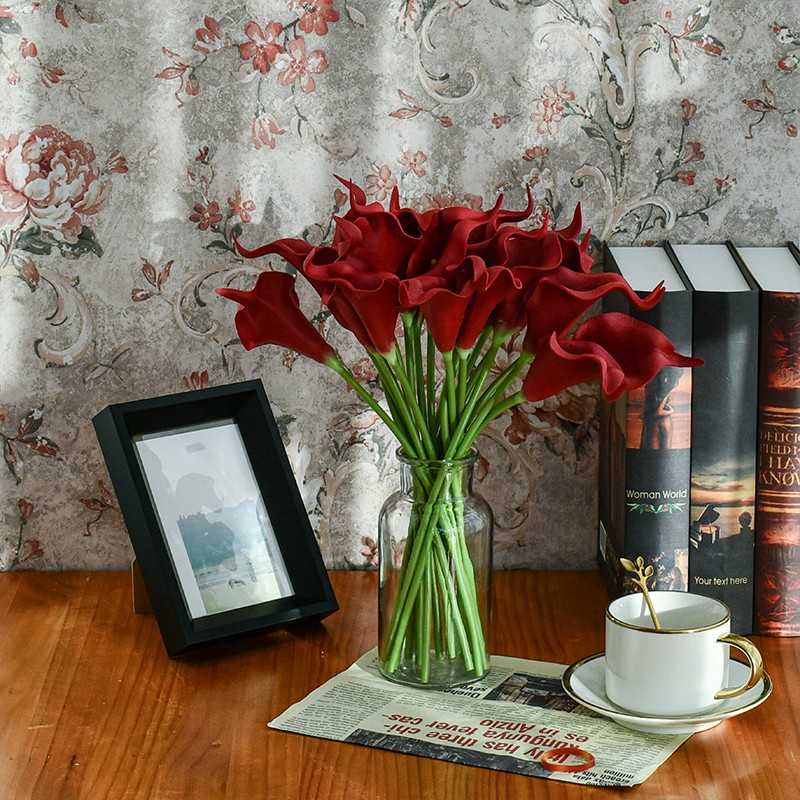 Mandy's 20pcs Burgundy Flowers Artificial Calla Lily Silk Fake Flowers 13.4"