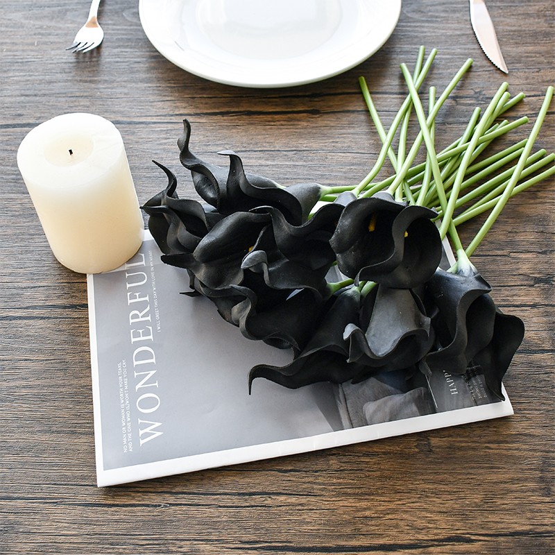 Mandy's 20pcs Black Flowers Artificial Calla Lily Silk Fake Flowers 13.4"