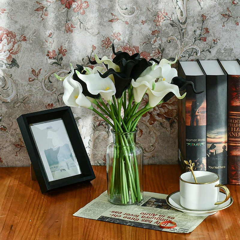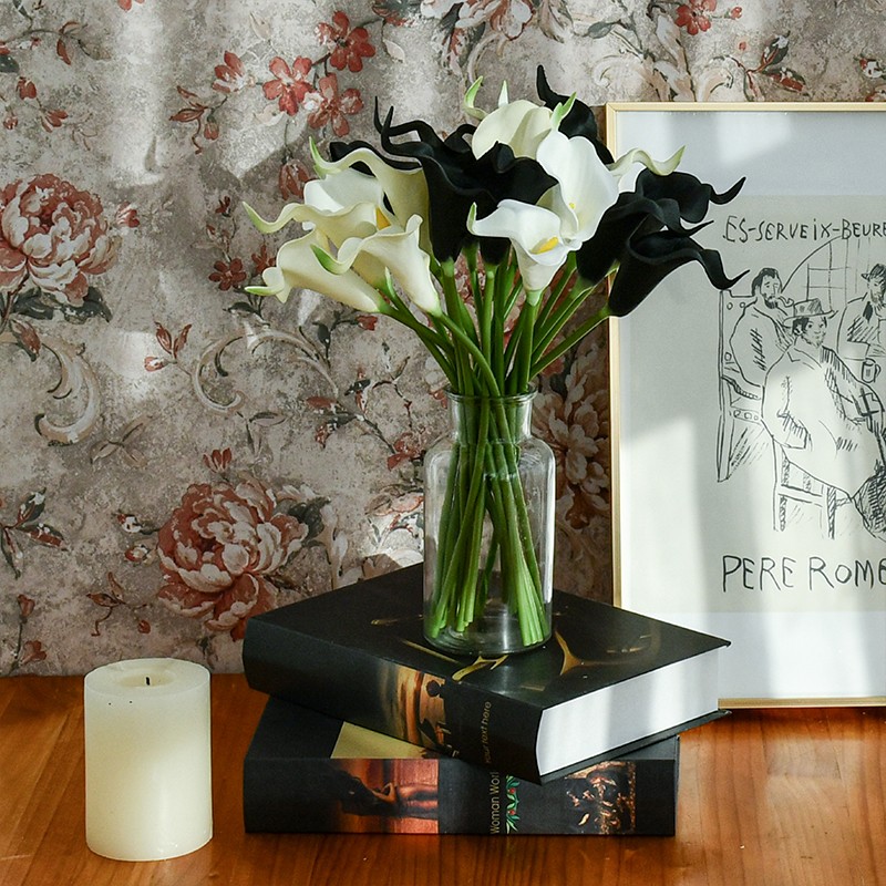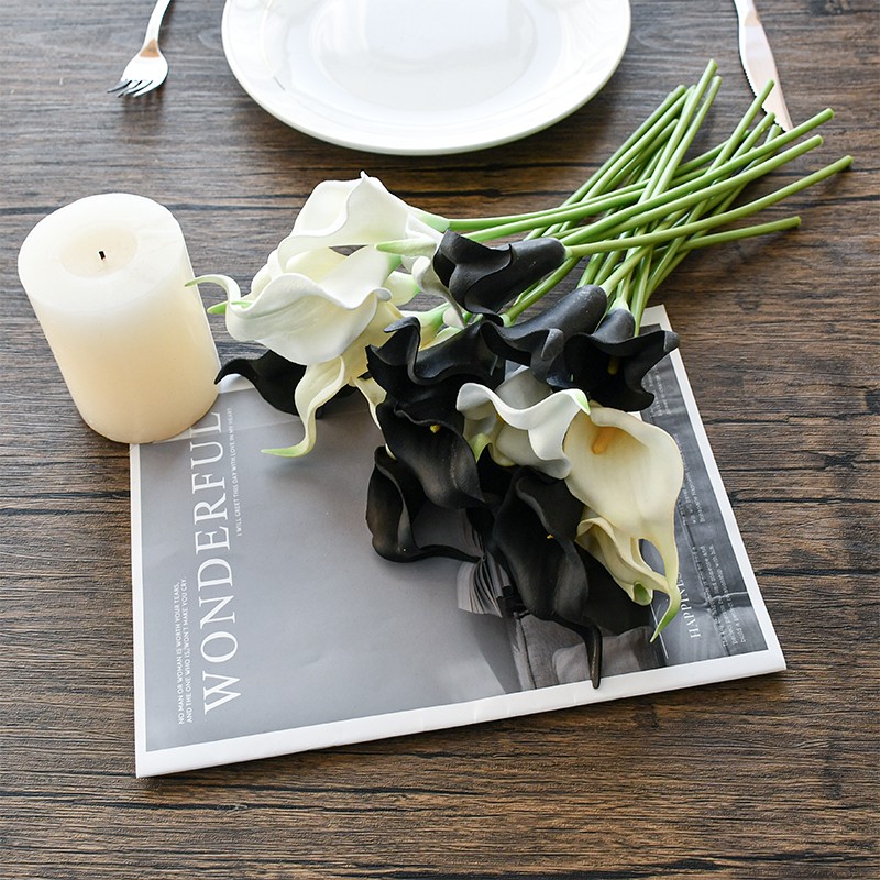 Mandy's 20pcs Black and White Fake Flowers Artificial Calla Lily 13.4"
