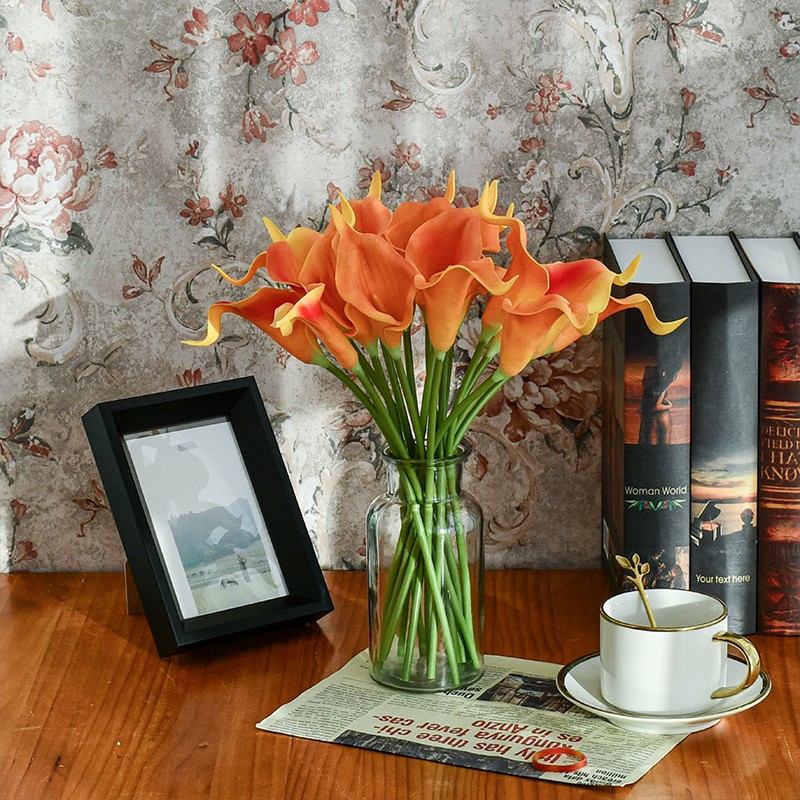 Mandy's 20pcs Orange Flowers Artificial Calla Lily Silk Fake Flowers 13.4"