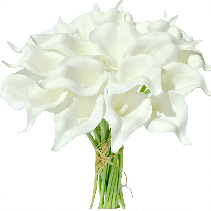 Mandy's 20pcs Pure White Fake Flowers Artificial Calla Lily Silk Flowers 13.4”