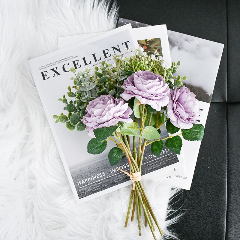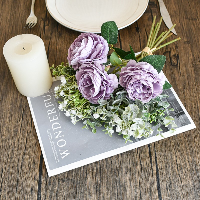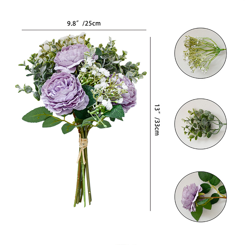 Mandy's 9pcs Purple Fake Flowers Arrangements Peony Bouquet