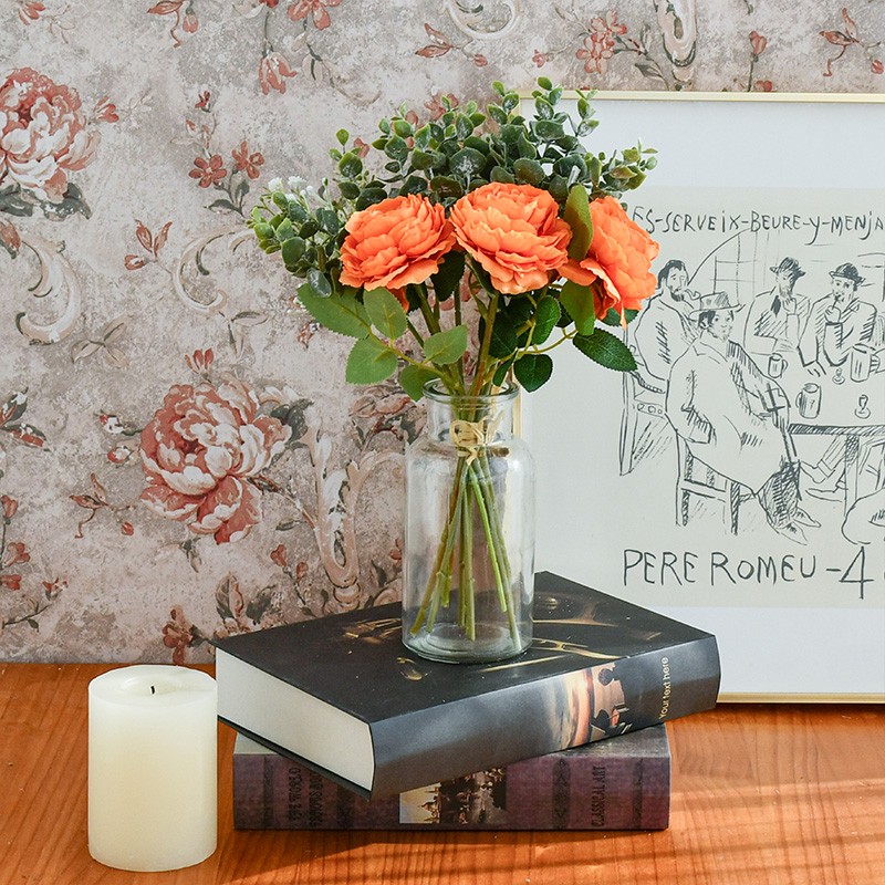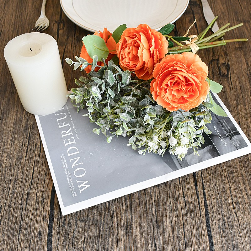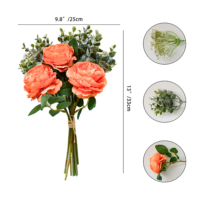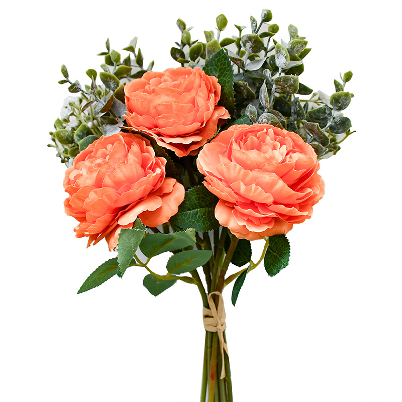 Mandy's 9pcs Orange Fake Flowers Arrangements Peony Bouquet