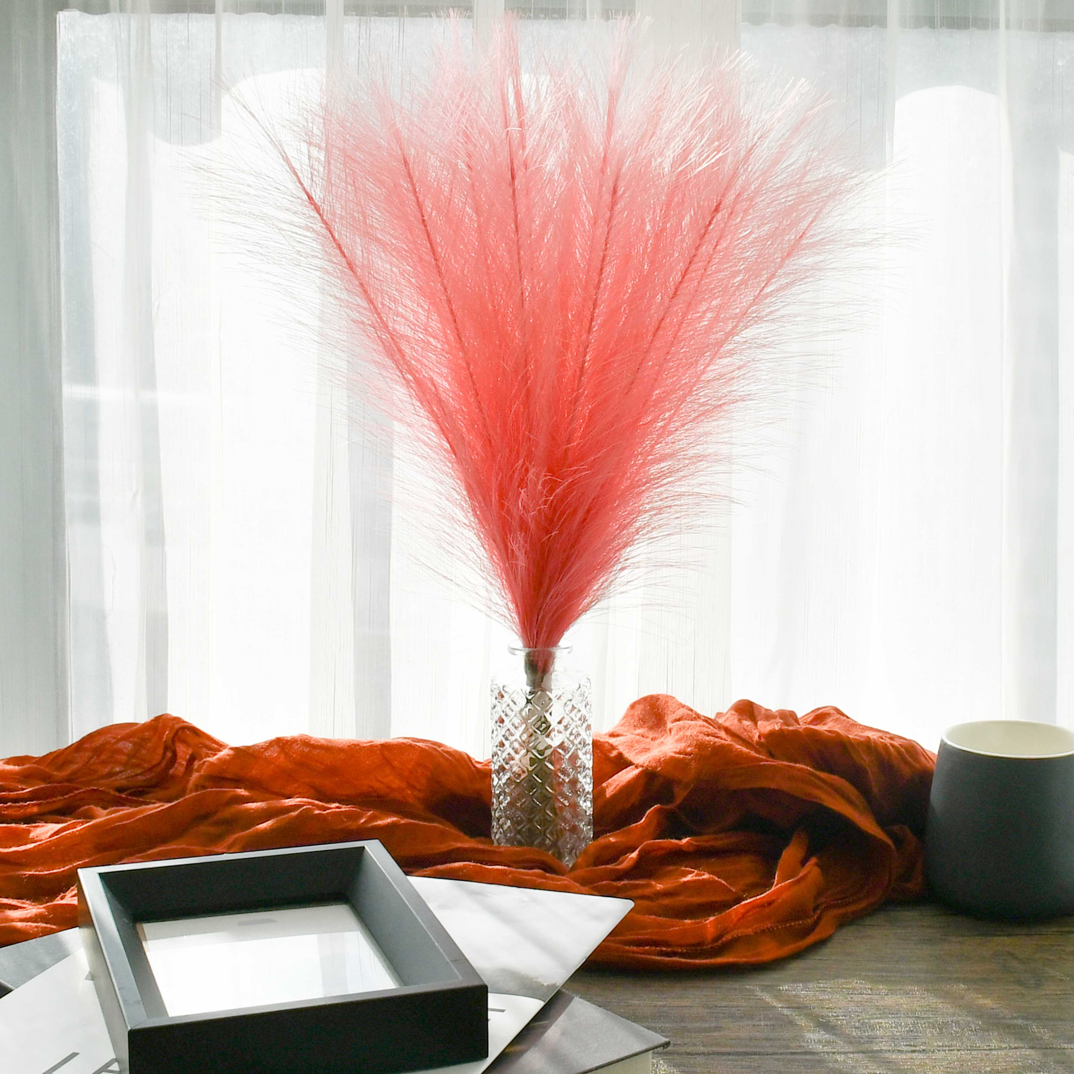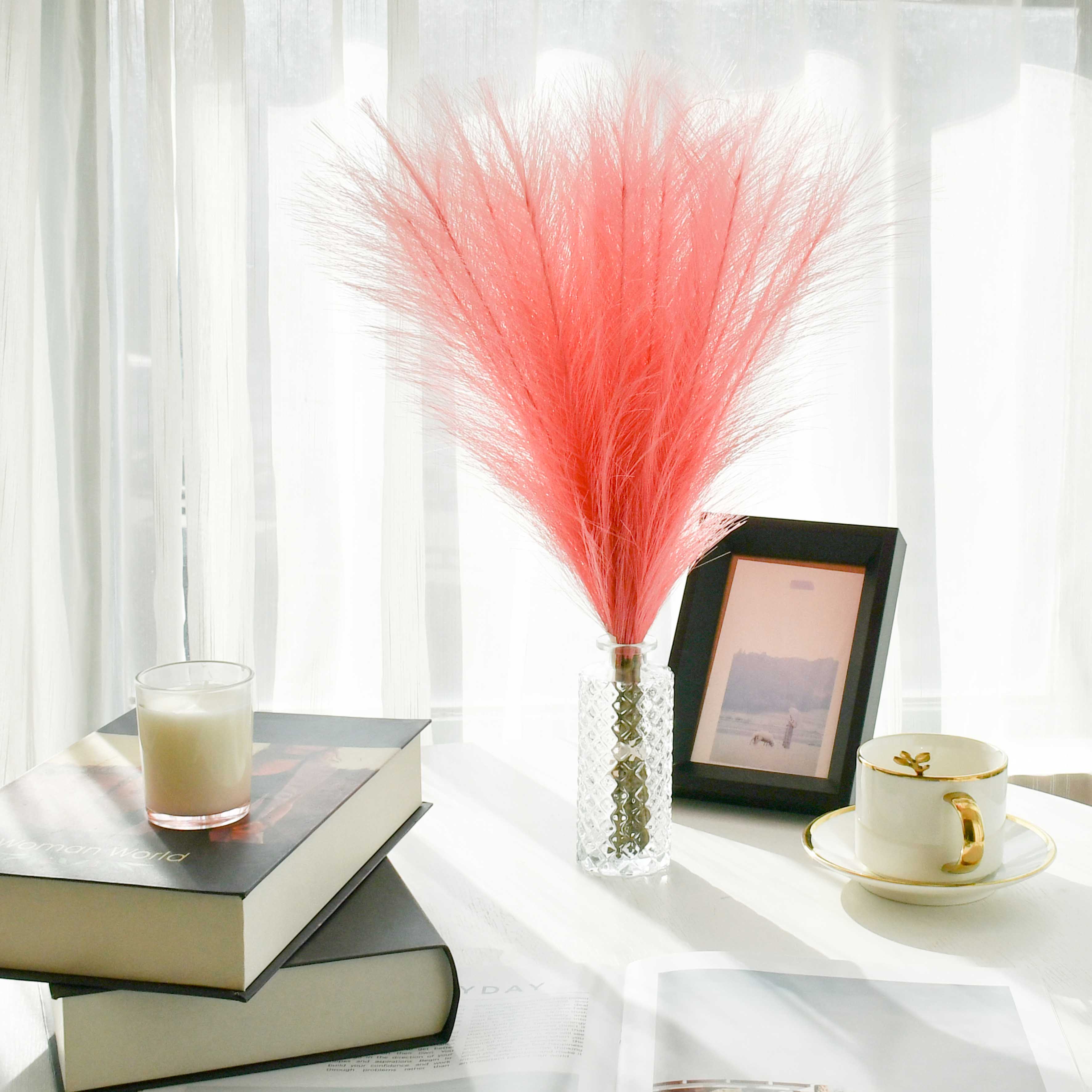 Mandy's 20pcs Coral Silk Pampas Grass Fake Flowers 18"