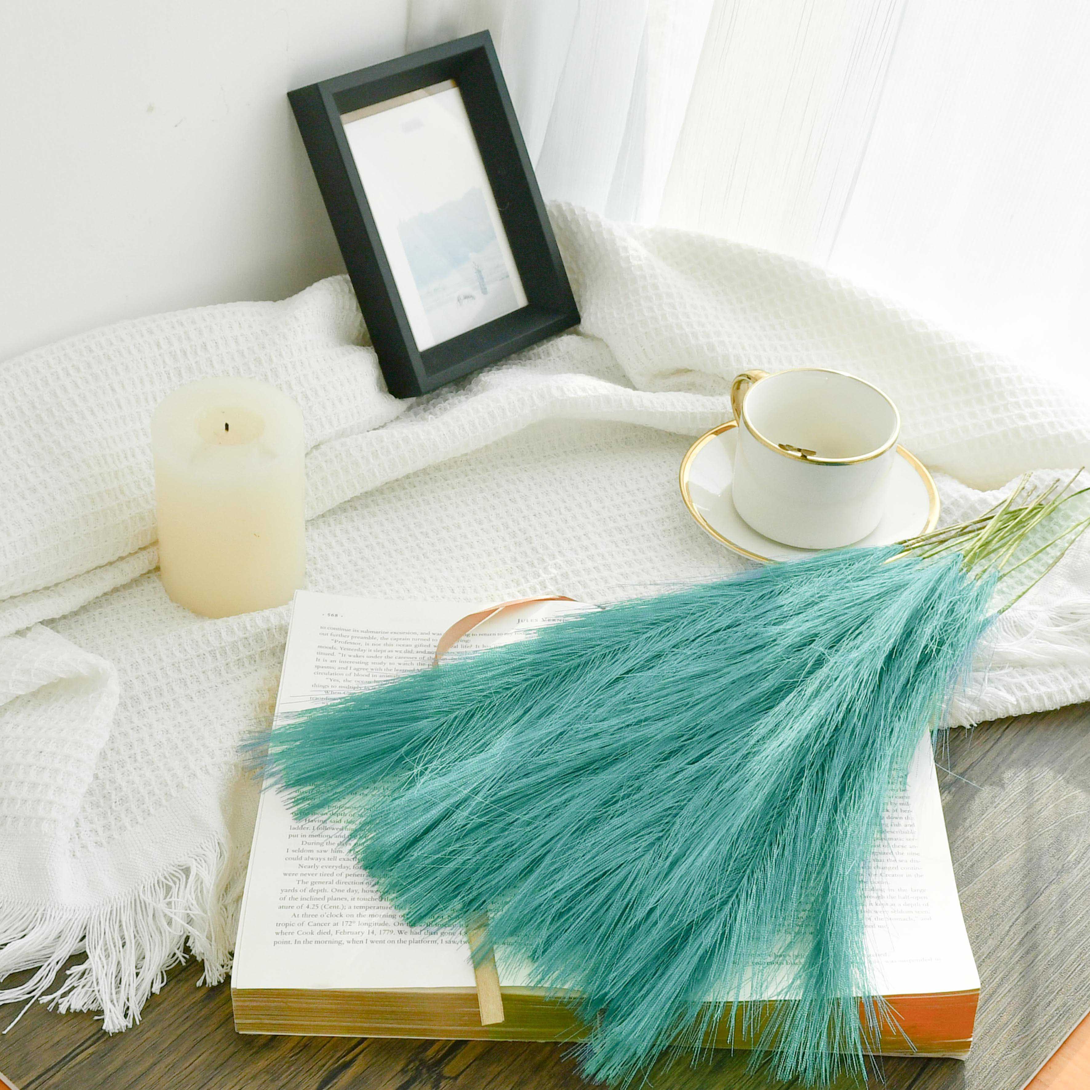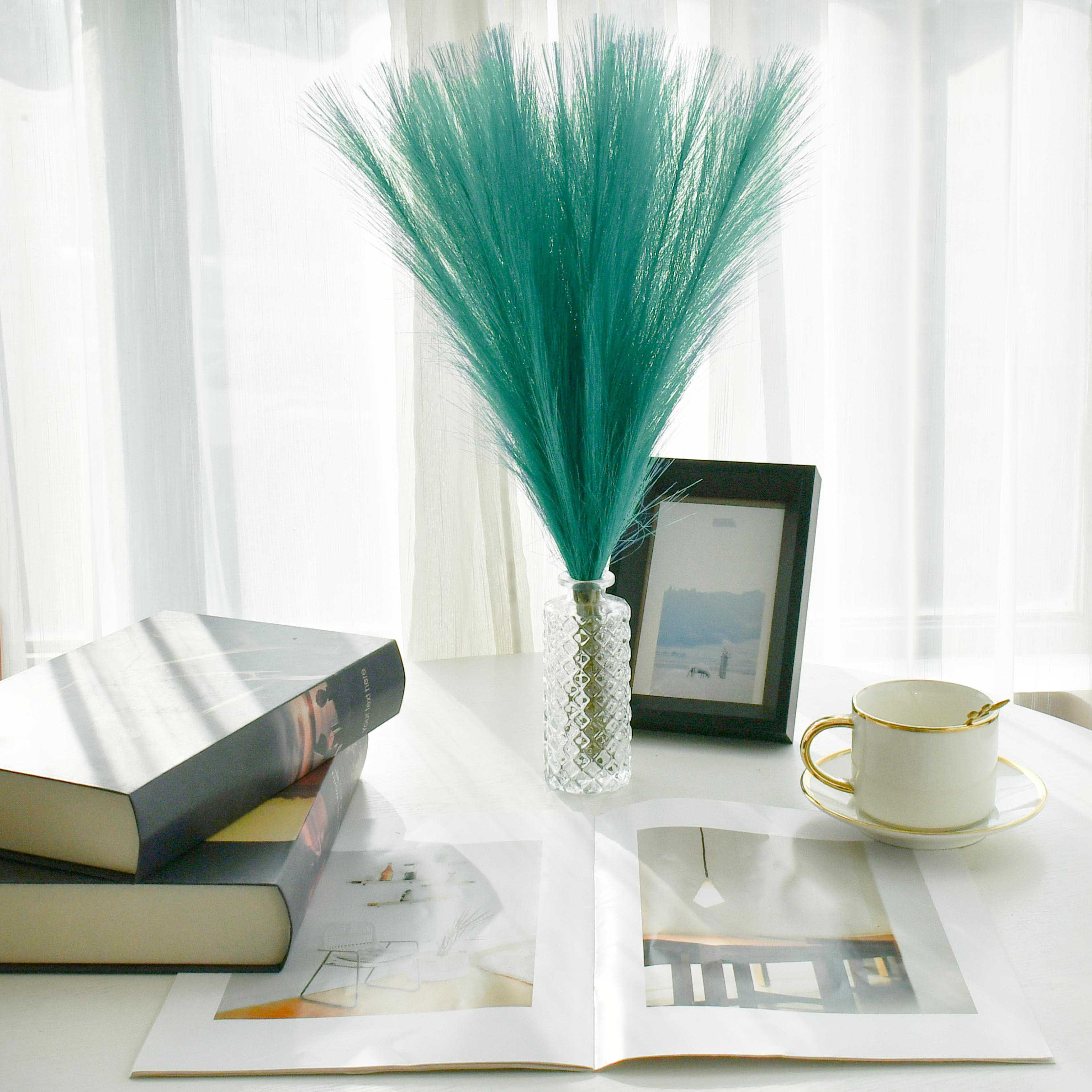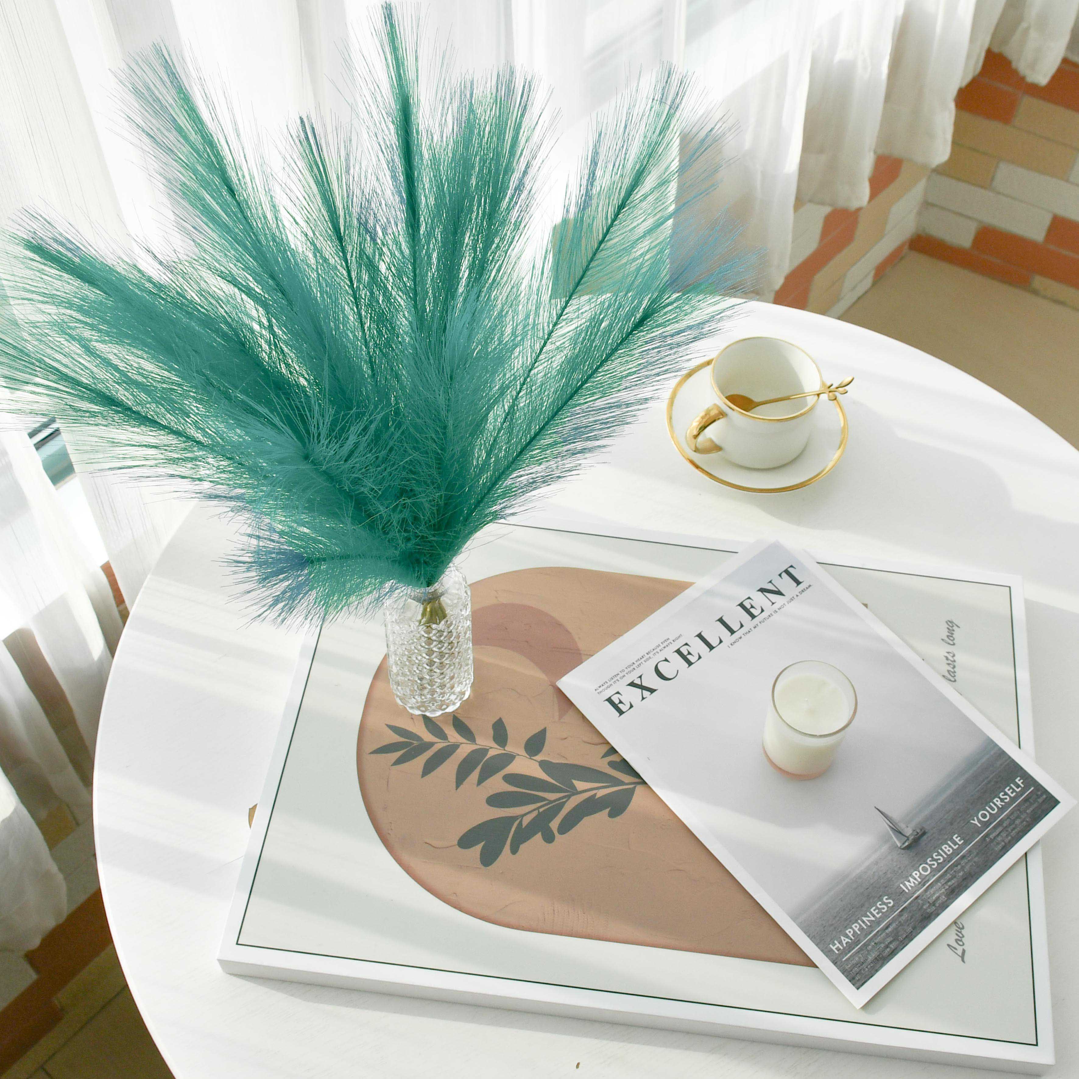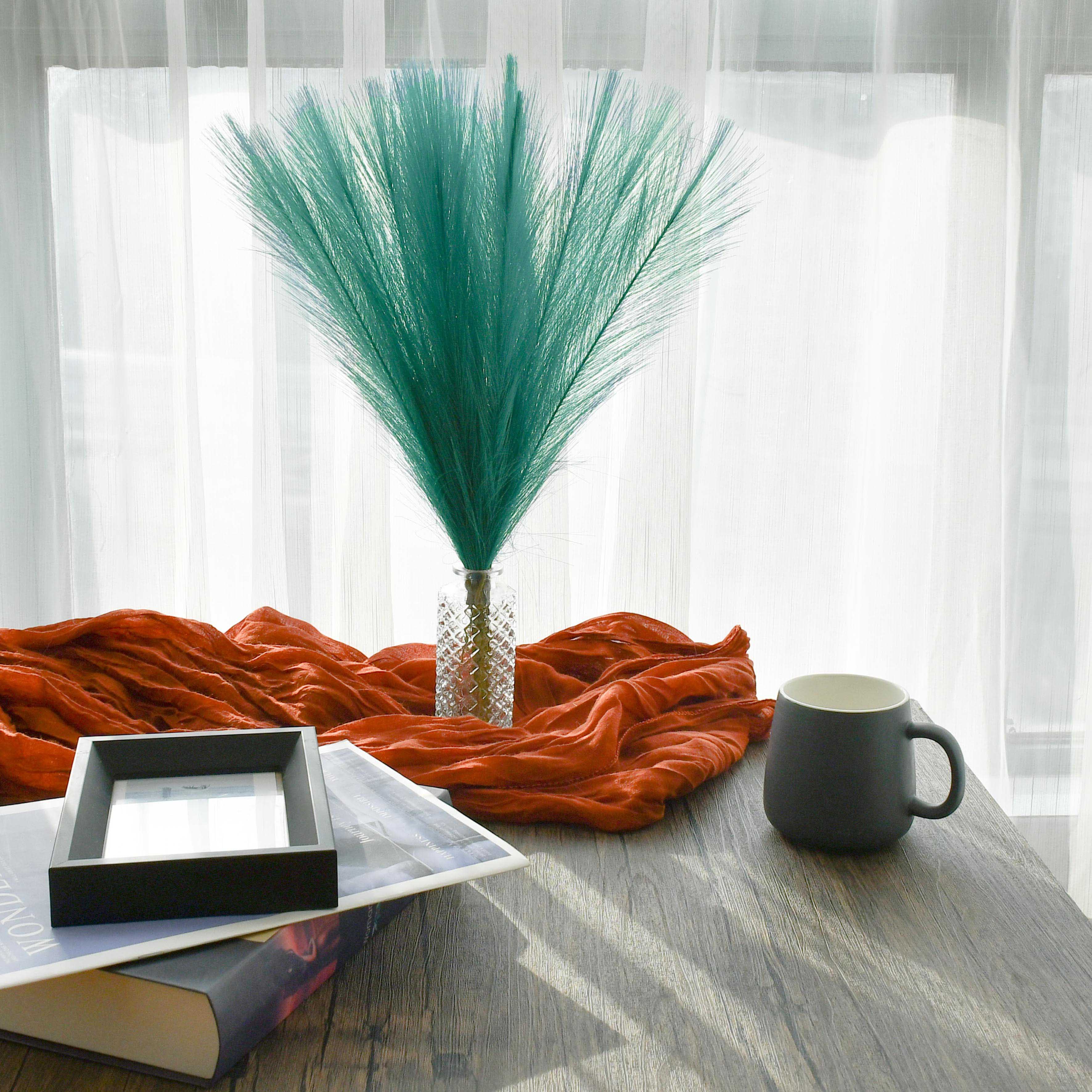 Mandy's 20pcs Teal Silk Pampas Grass Fake Flowers 18"