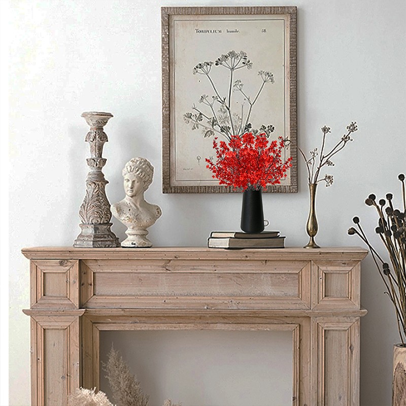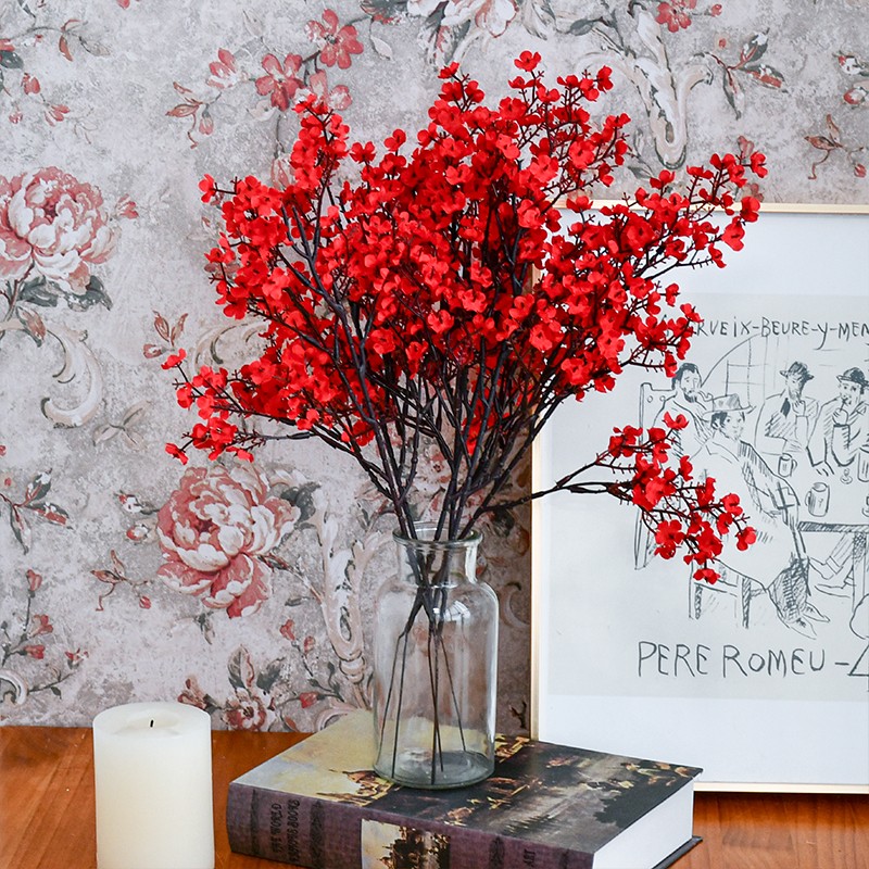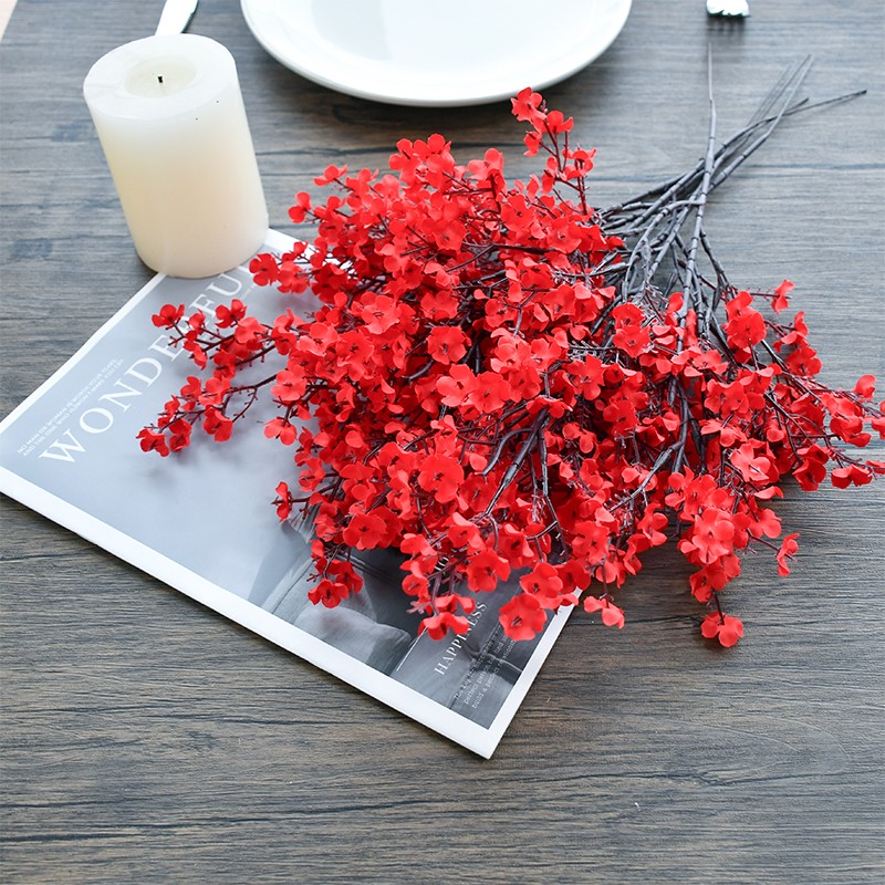 Mandy's 6 Bundles Red Flowers Silk Babys Breath Fake Flowers 19.7"