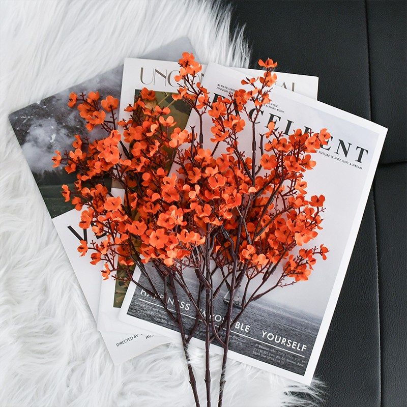 Mandy's 6pcs Orange Artificial Flowers Silk Babys Breath Gypsophila 19.7"