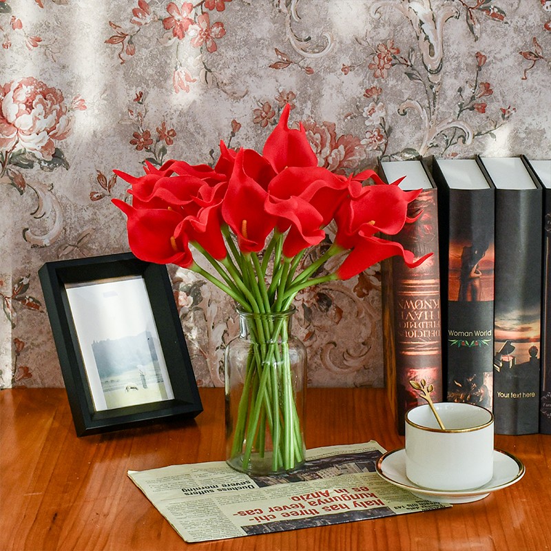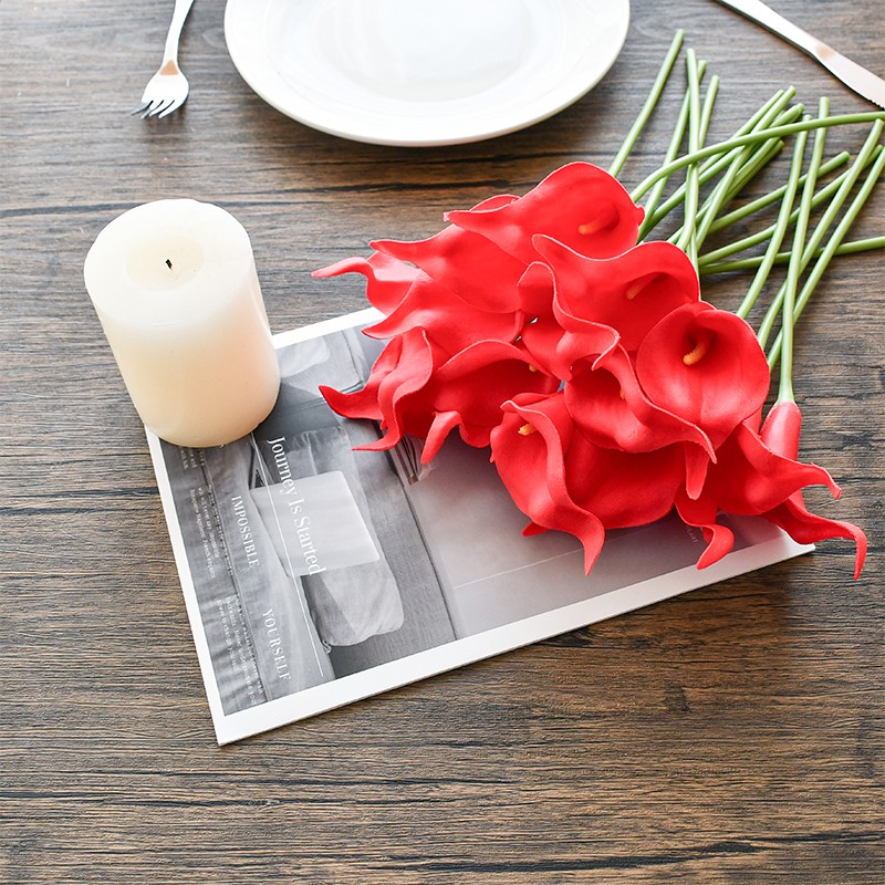 Mandy's 20pcs Red Calla Lily Silk Fake Flowers 13.4" for Christmas
