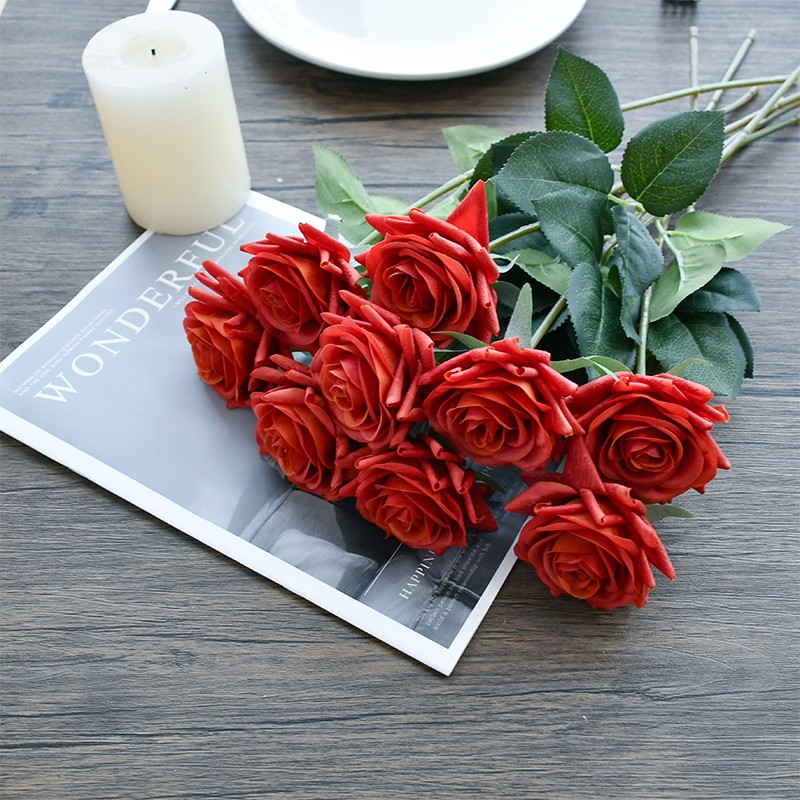 Mandy's 10pcs Burnt Orange Rose Real Touch for Wedding