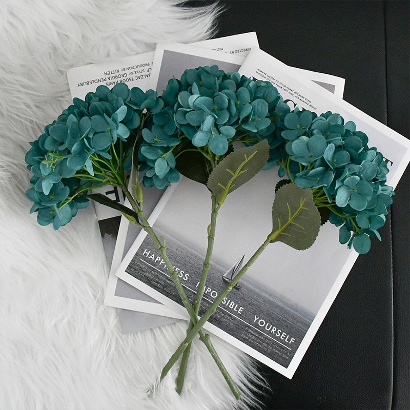 Mandy's 3pcs Teal Hydrangea Flowers Silk Flowers