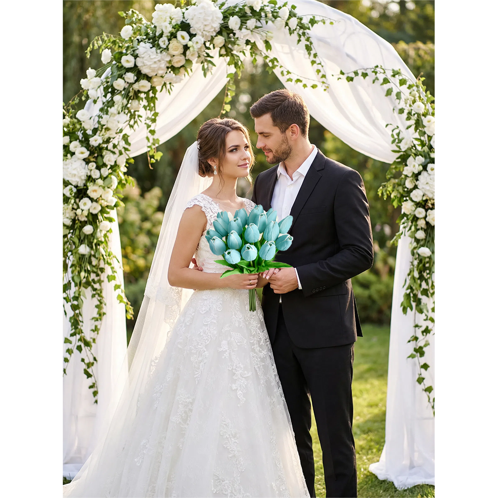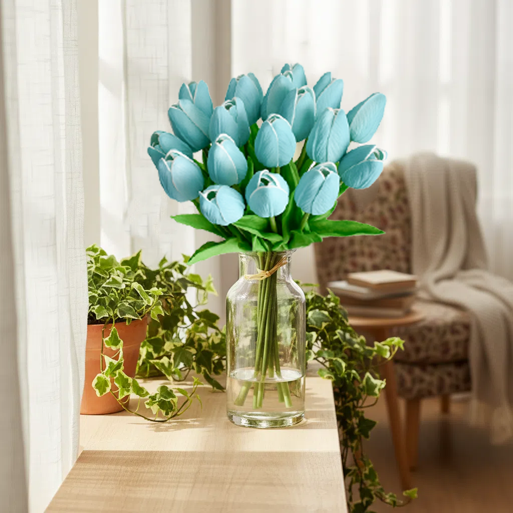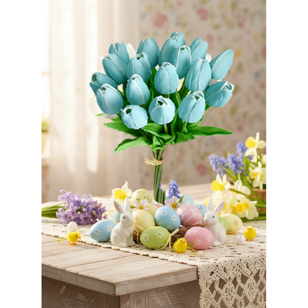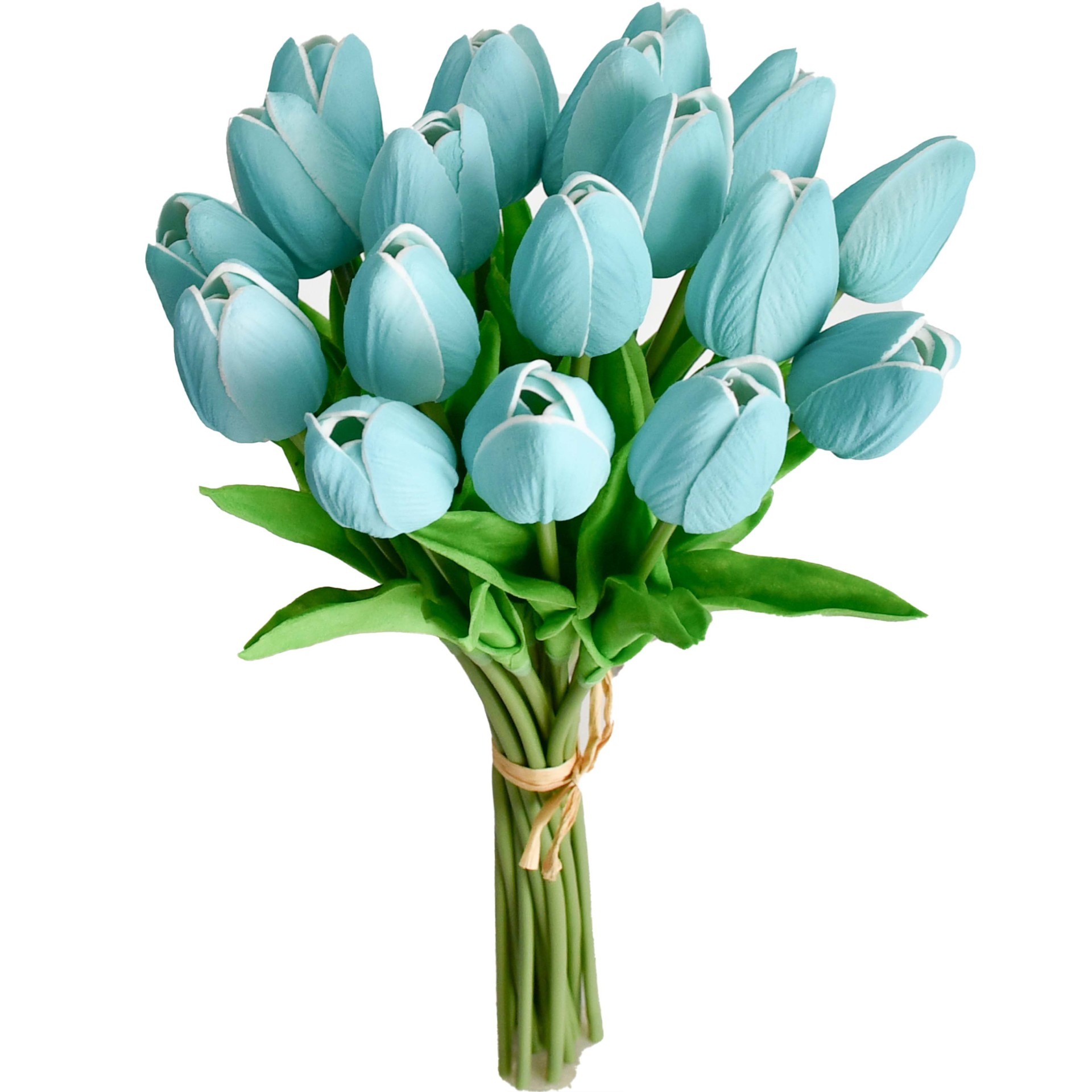 Mandy's 20pcs Robin Egg Blue Artificial Tulip Silk Fake Flowers 13.5"