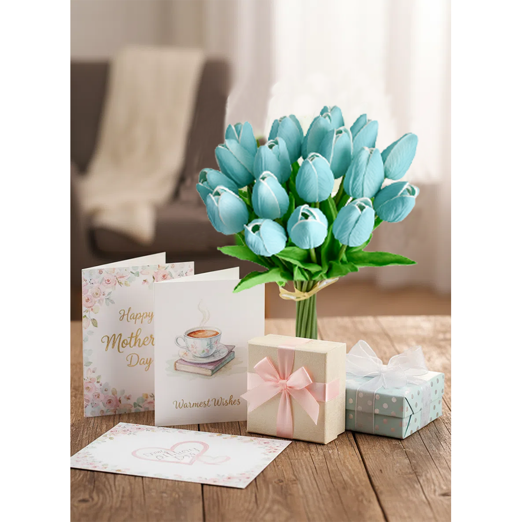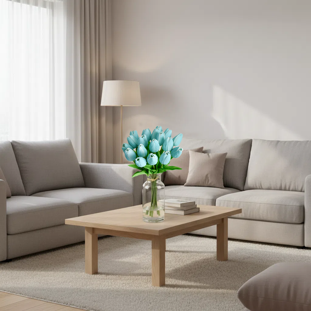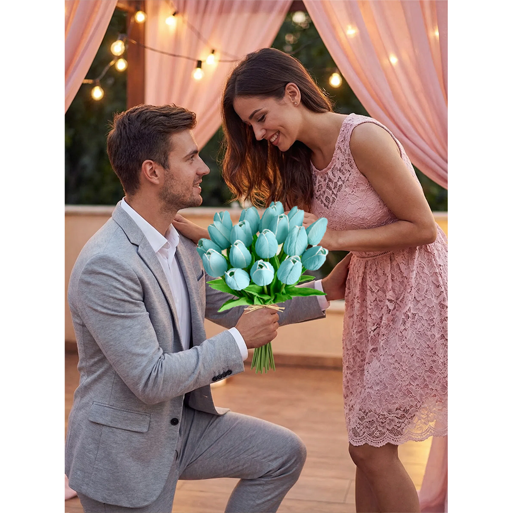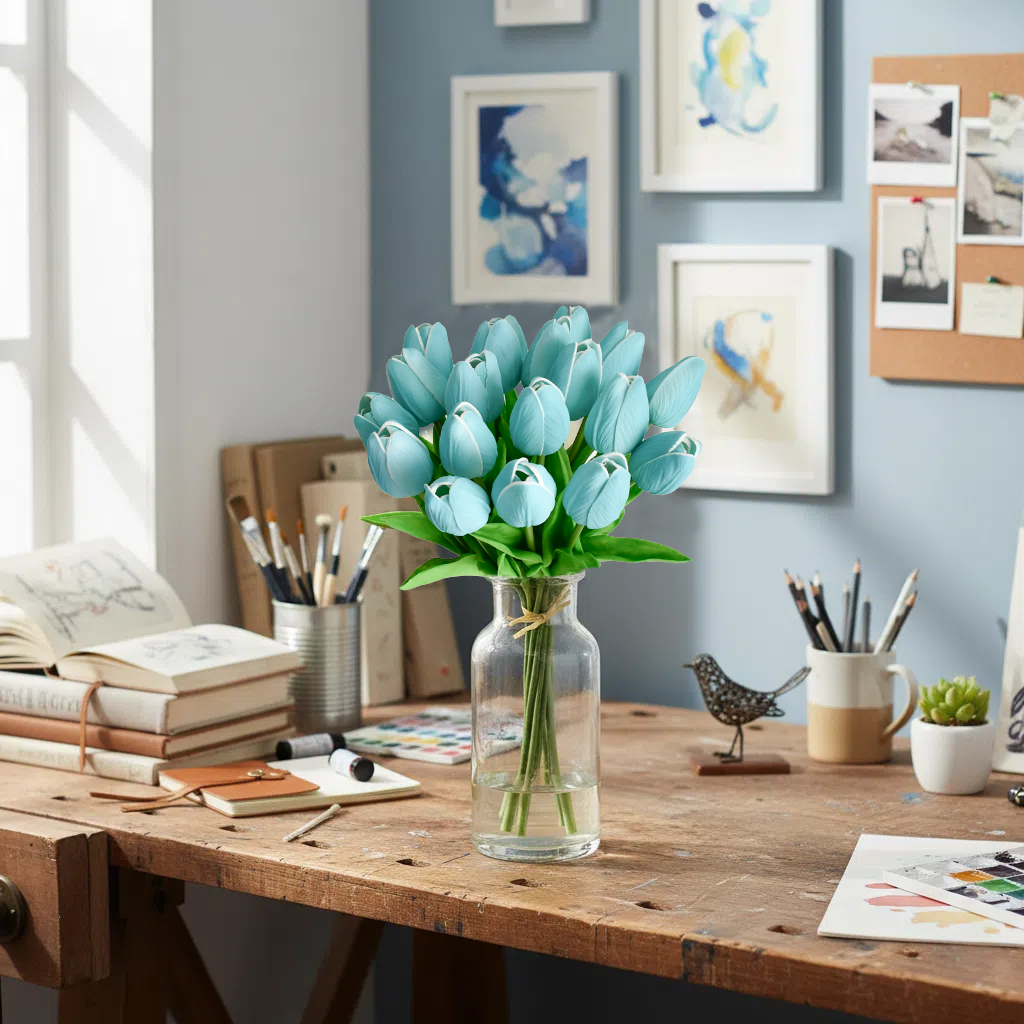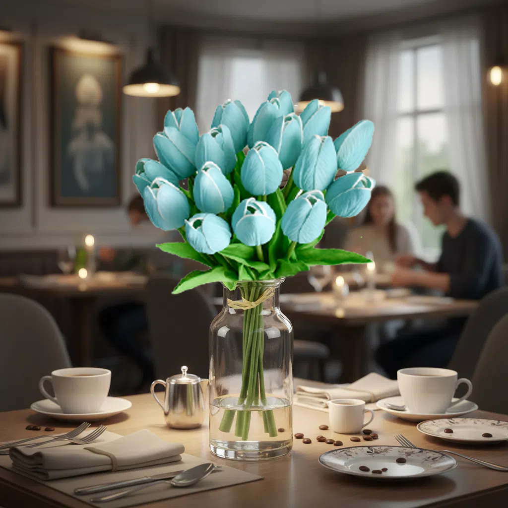 Mandy's 20pcs Robin Egg Blue Artificial Tulip Silk Fake Flowers 13.5"