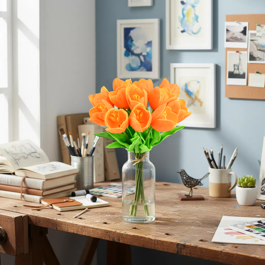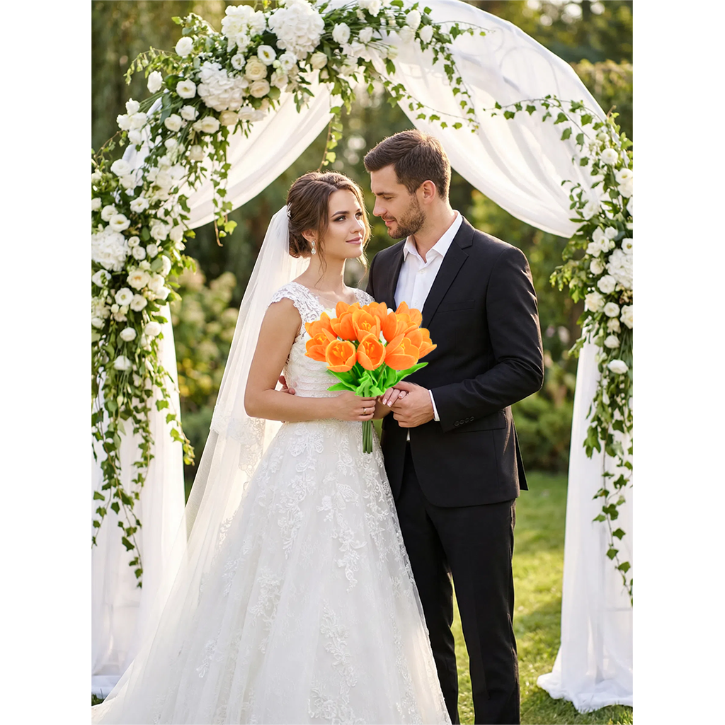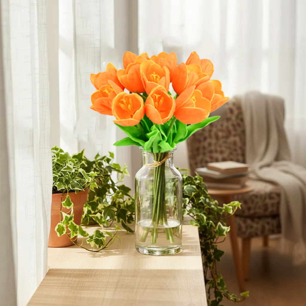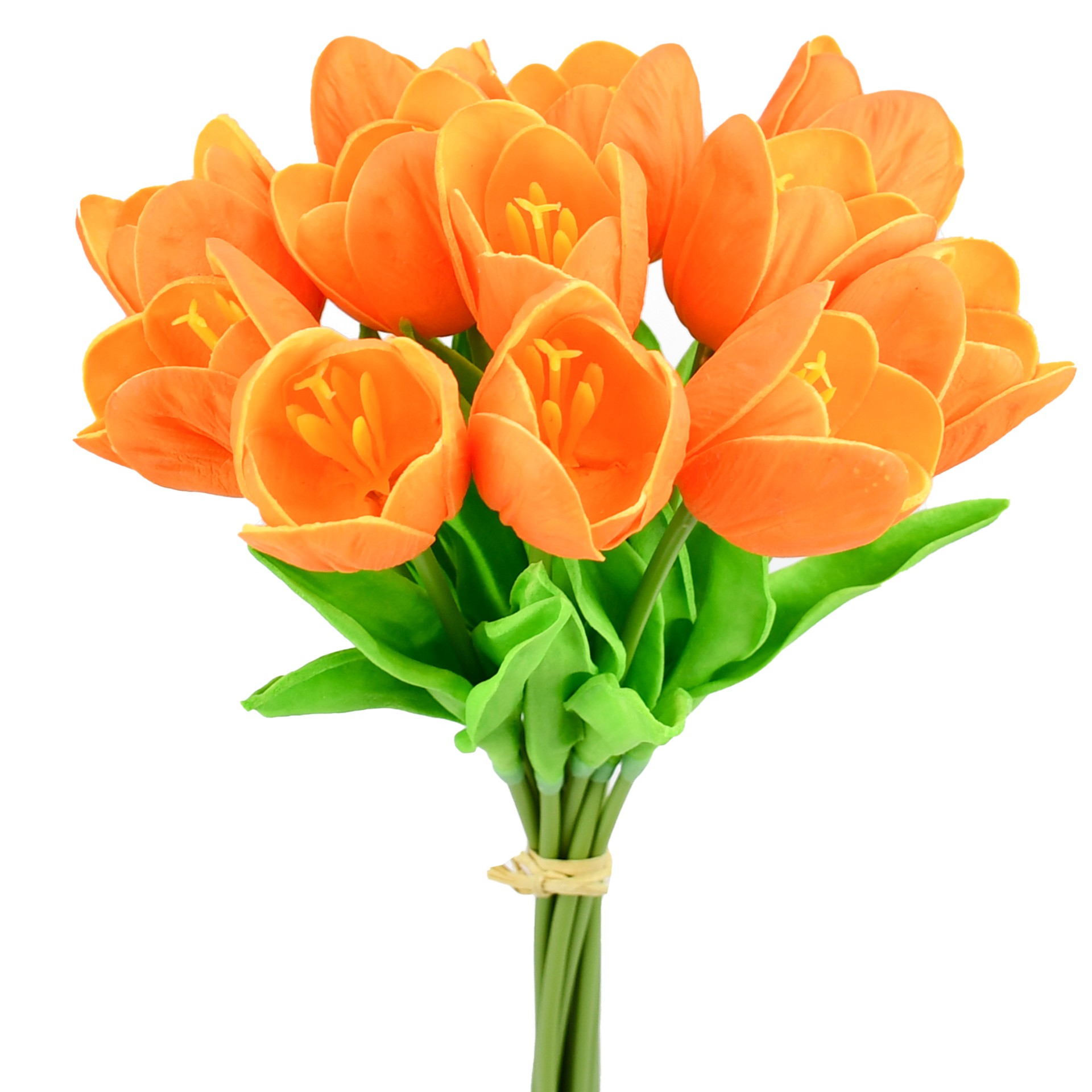 Mandy's 12pcs Orange Partially Open Artificial Flowers Tulip Silk Fake Flowe
