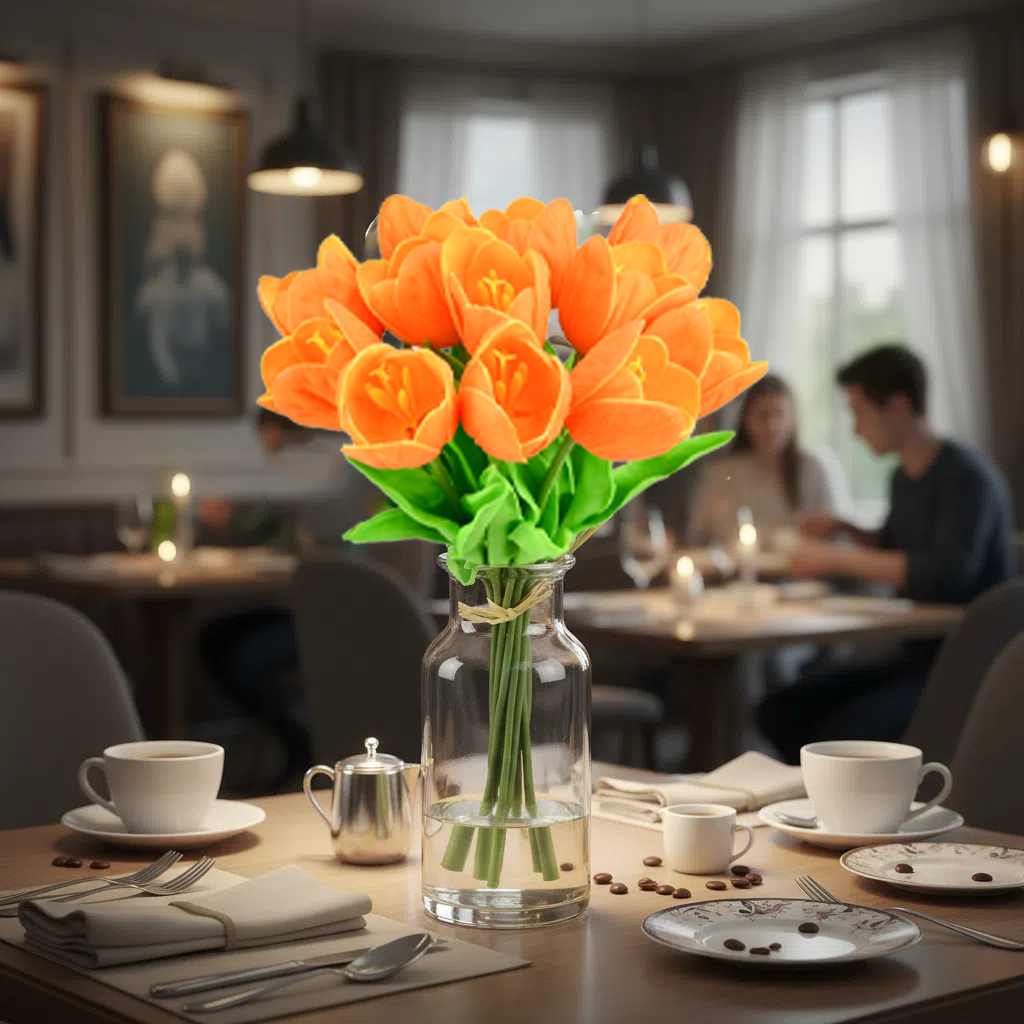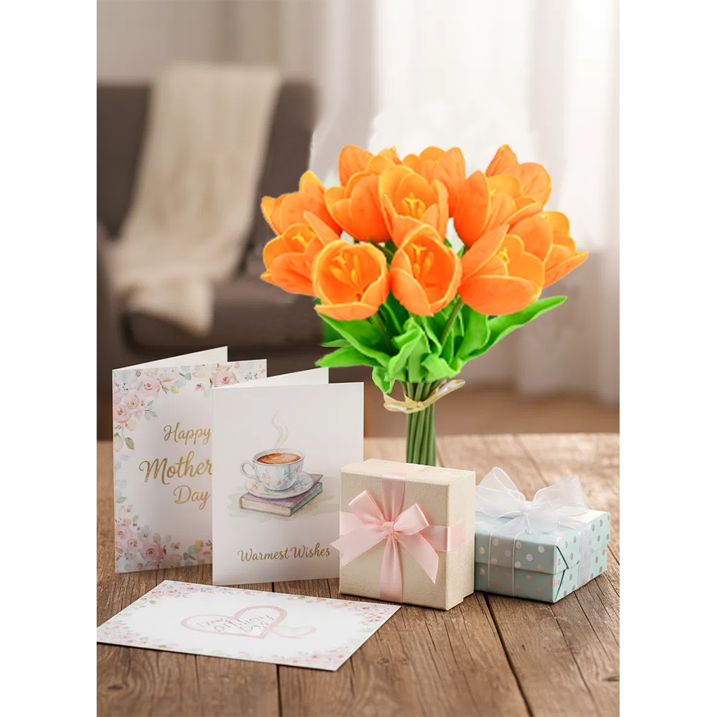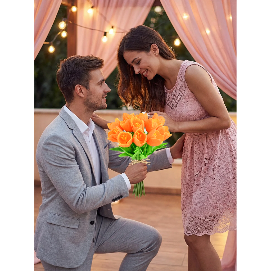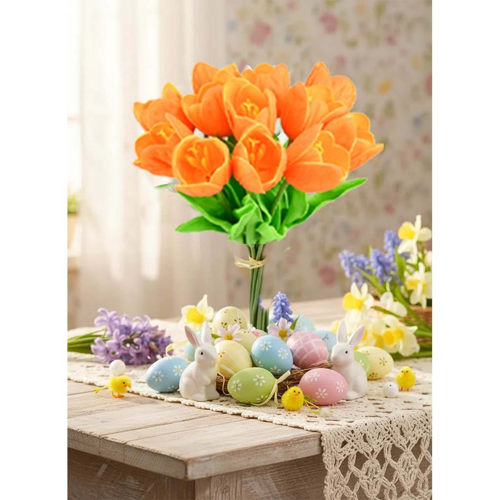 Mandy's 12pcs Orange Partially Open Artificial Flowers Tulip Silk Fake Flowe