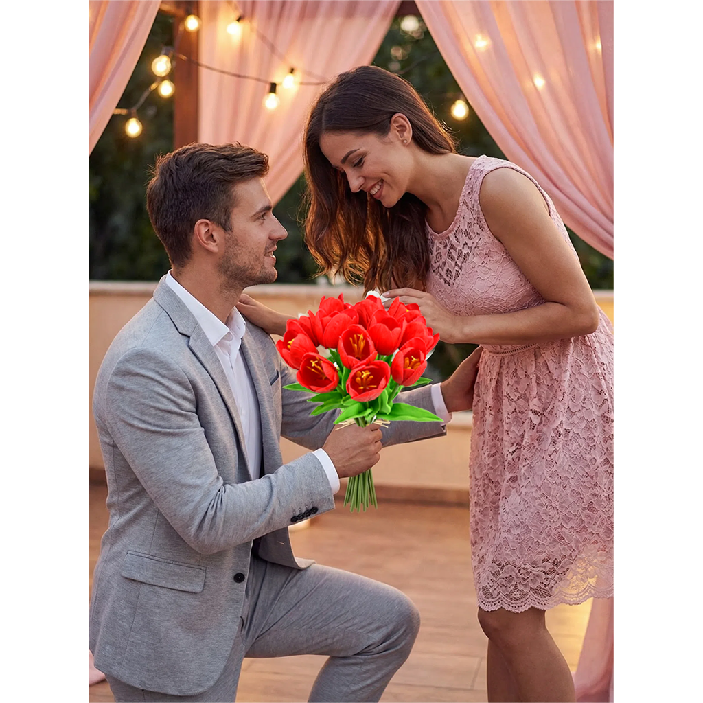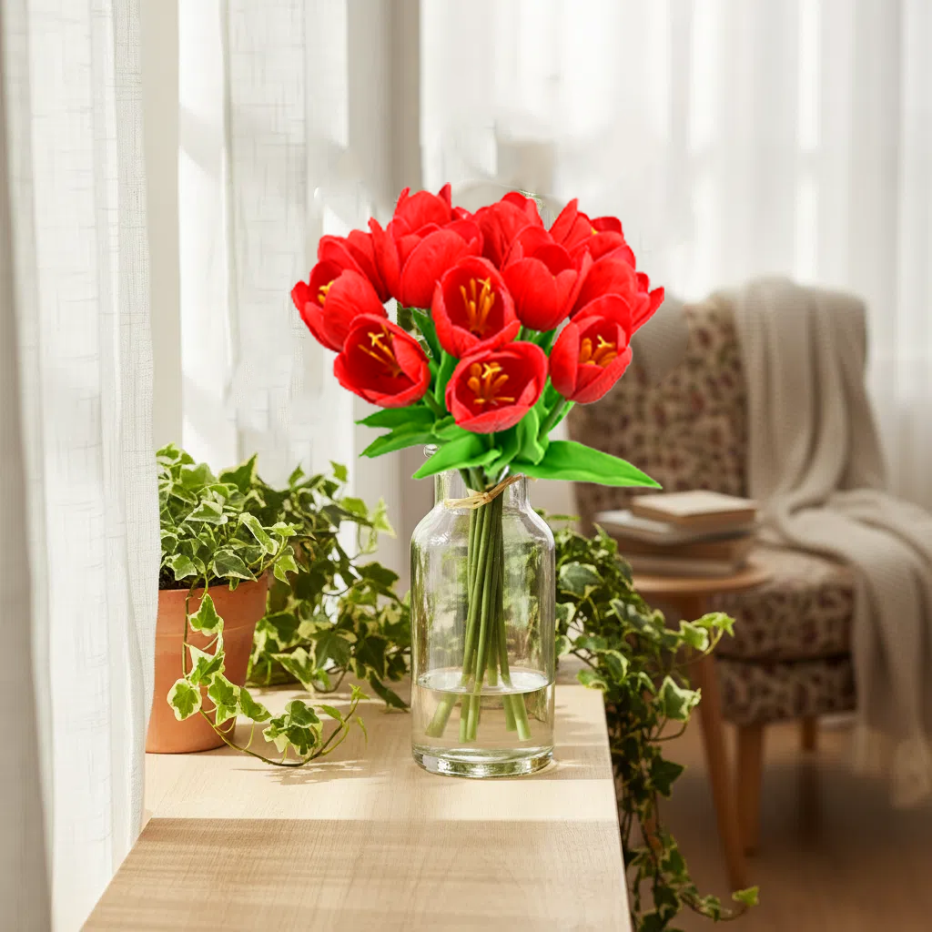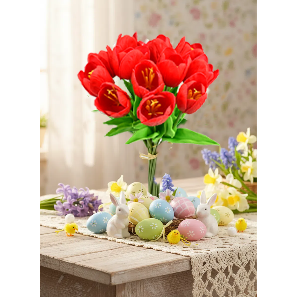 Mandy's 12pcs Red Partially Open Artificial Flowers Tulip Silk Fake Flowe