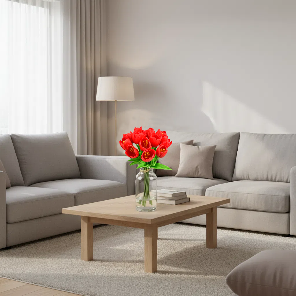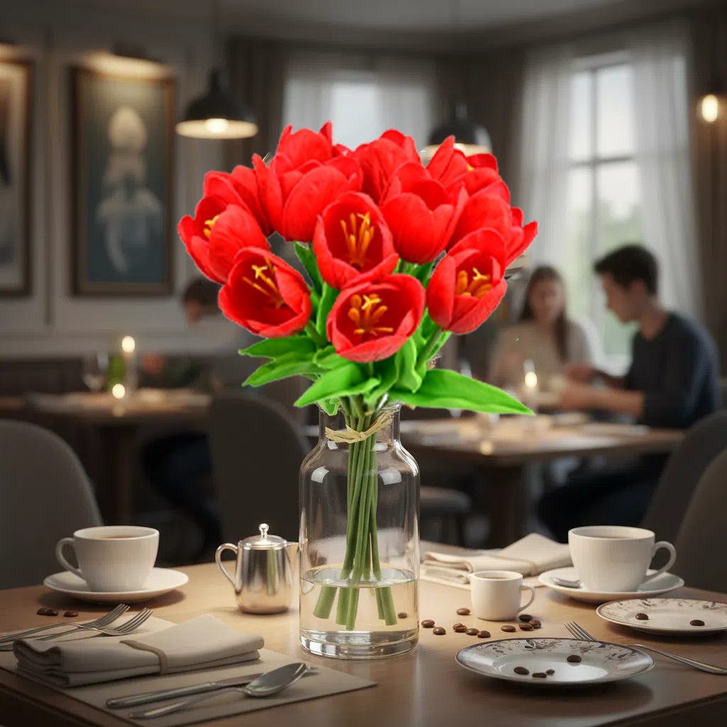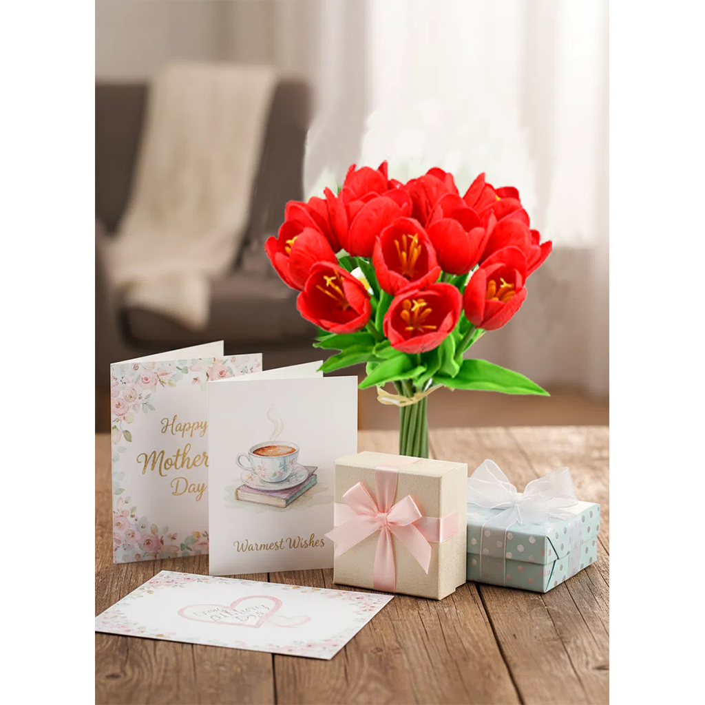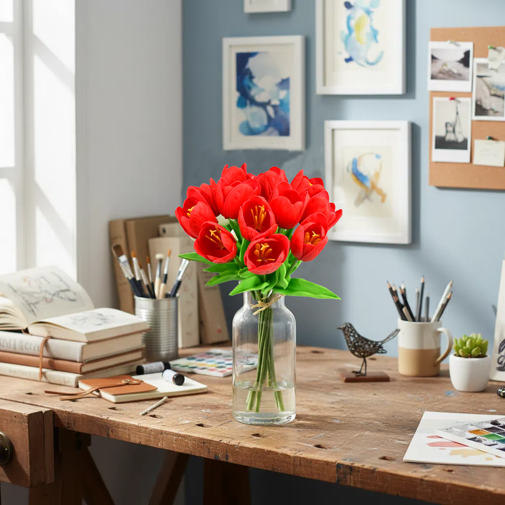 Mandy's 12pcs Red Partially Open Artificial Flowers Tulip Silk Fake Flowe