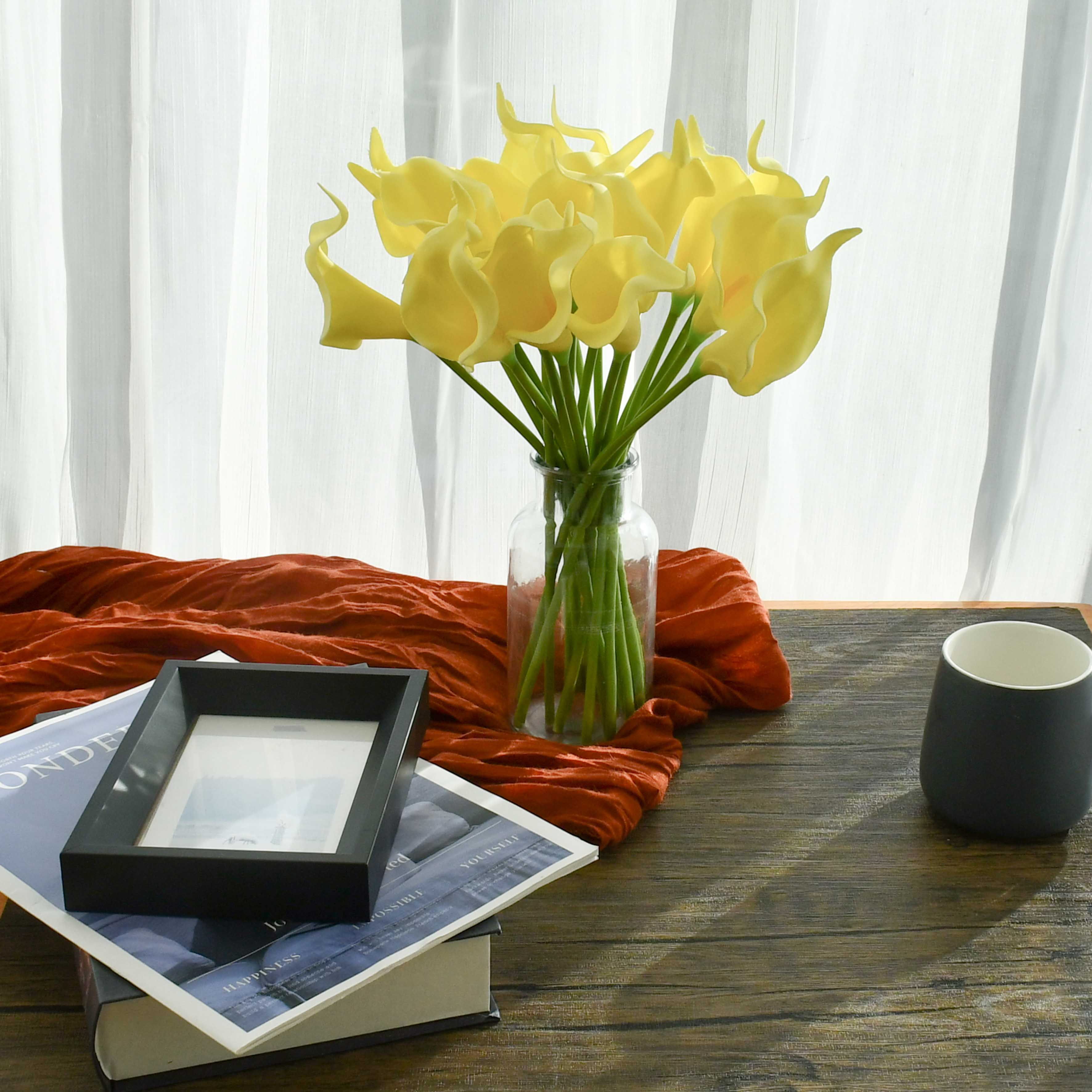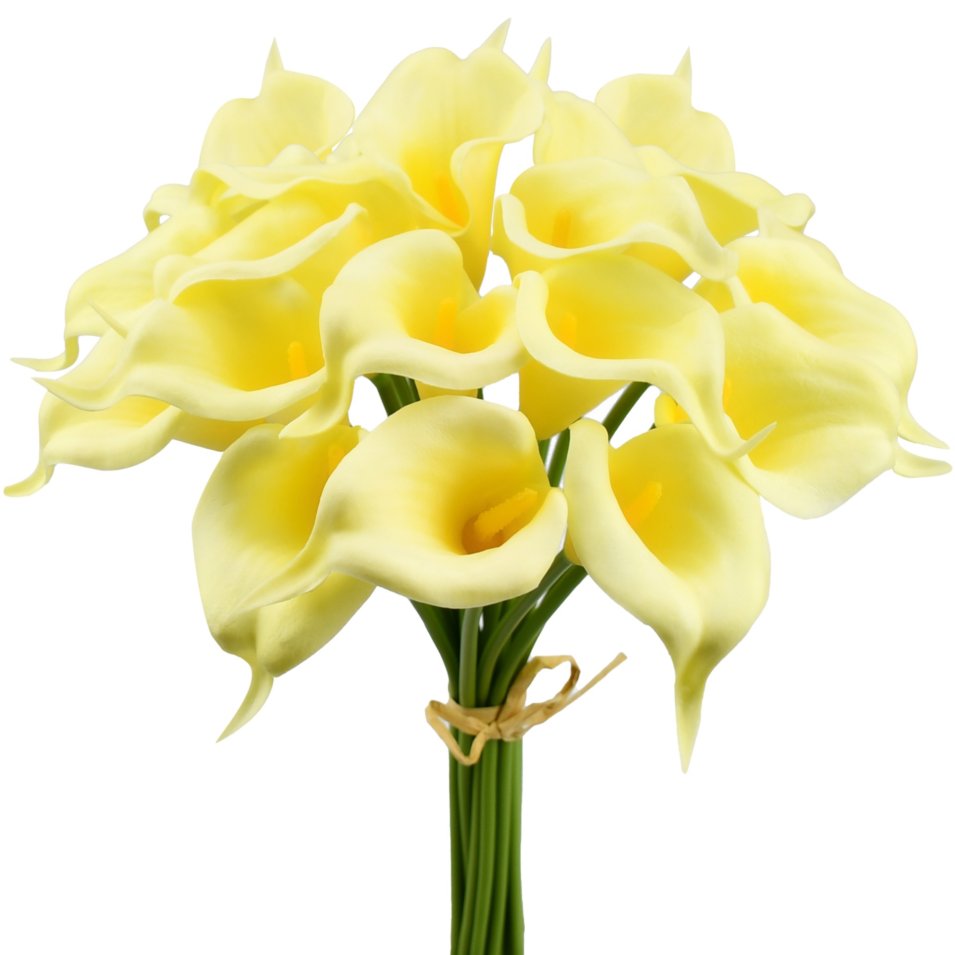 Mandy's 20pcs Light Yellow Flowers Artificial Calla Lily Silk Fake Flowers 13.5