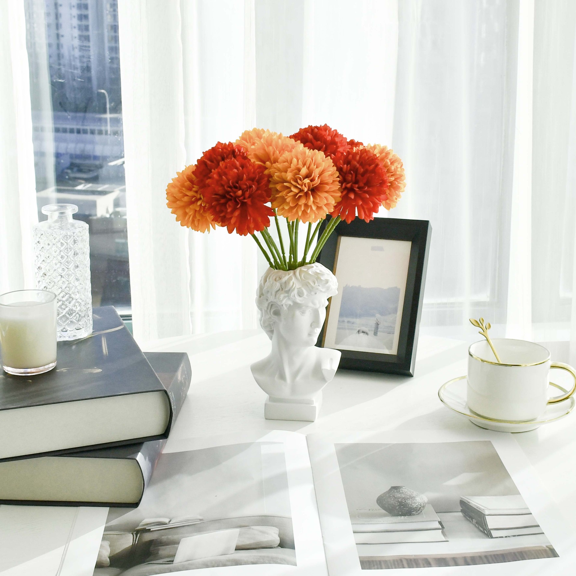 Mandy's 12pcs Red and Orange Chrysanthemum Ball 12"
