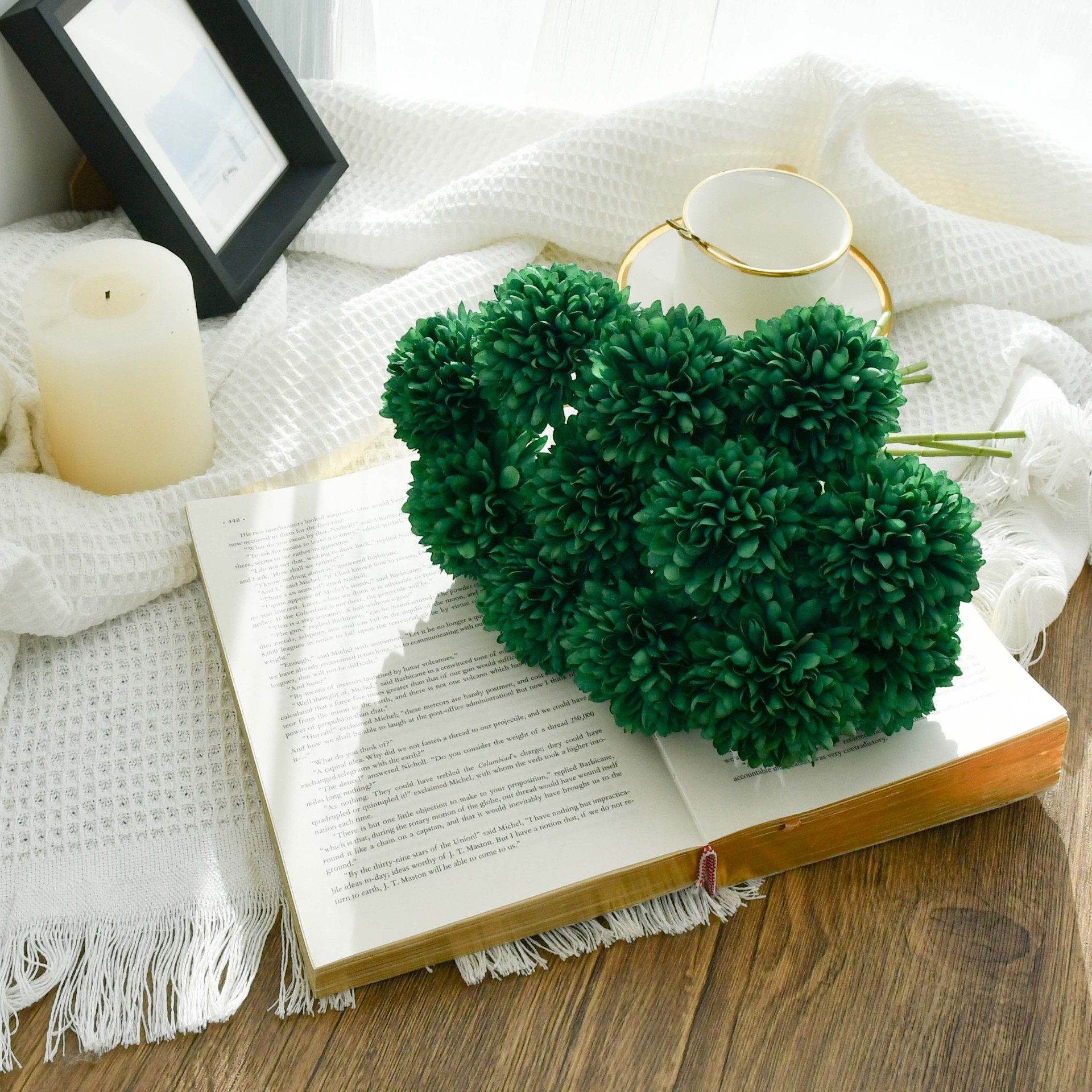 Mandy's 12pcs Dark Green Chrysanthemum Ball 12"