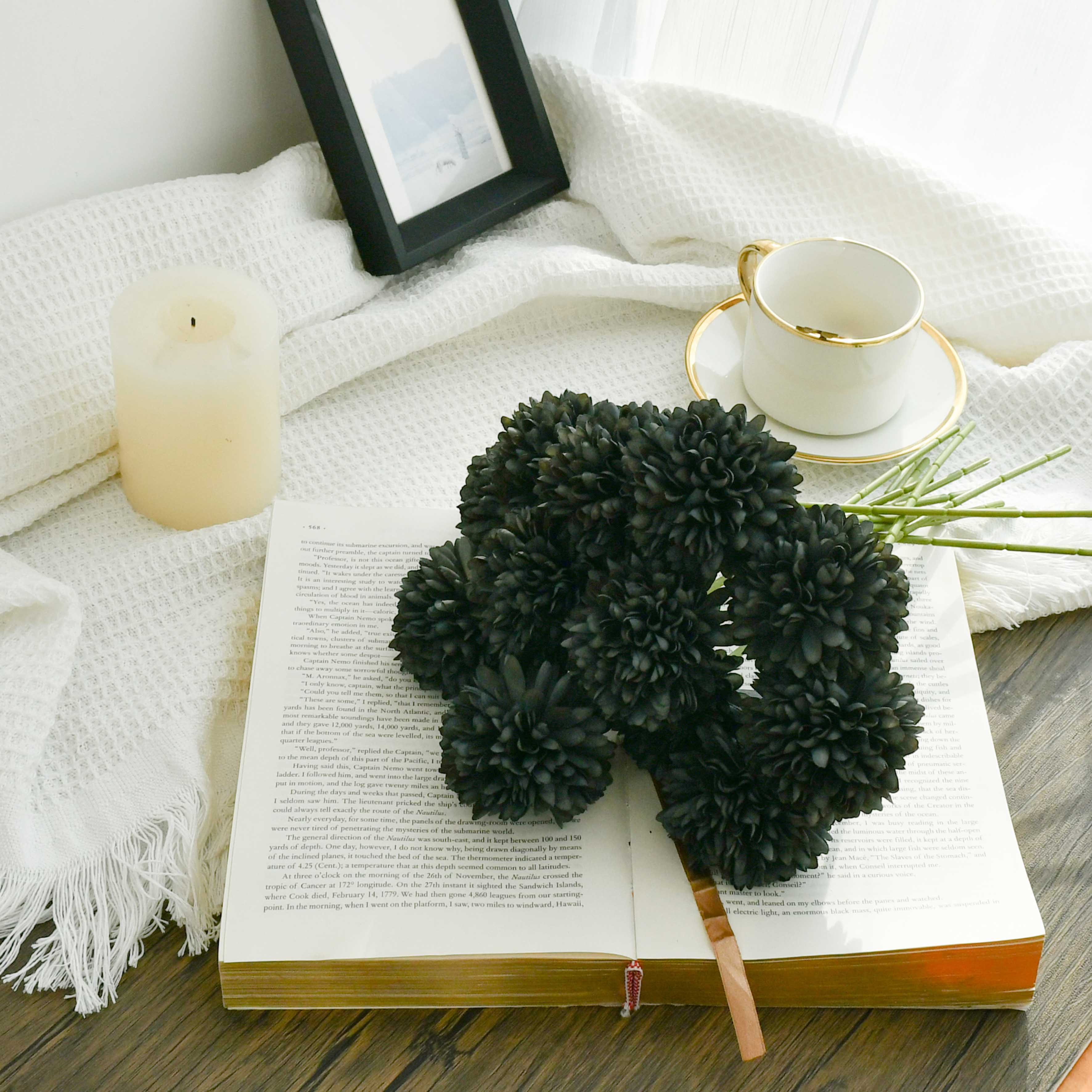 Mandy's 12pcs Black Chrysanthemum Ball 12"