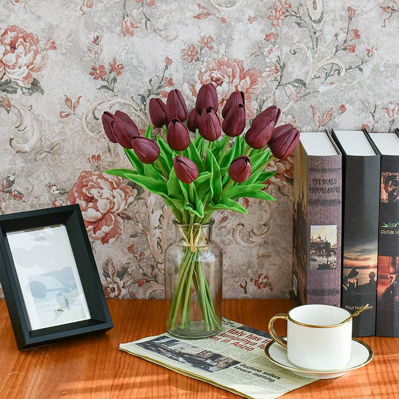 Mandy's 20pcs Plum Artificial Tulip Silk Fake Flowers 13.5"