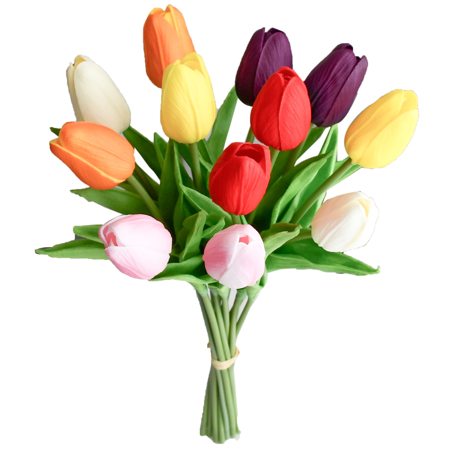 Mandy's 12pcs Multicolor Grey Artificial Tulip Silk Fake Flowers 13.5"