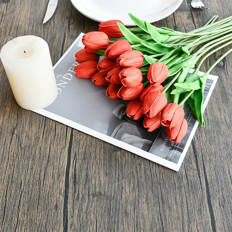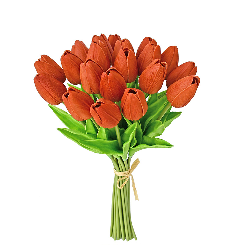 Mandy's 20pcs Dark Orange Artificial Tulip Silk Fake Flowers 13.5"