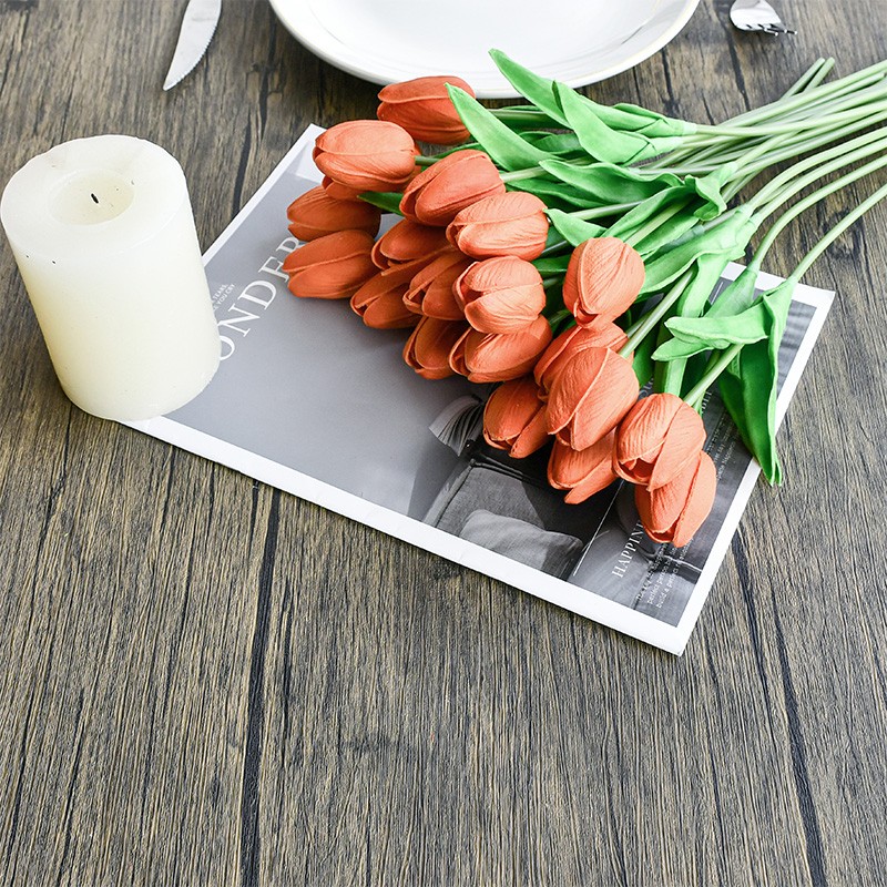 Mandy's 20pcs Burnt Orange Artificial Tulip Silk Fake Flowers 13.5"