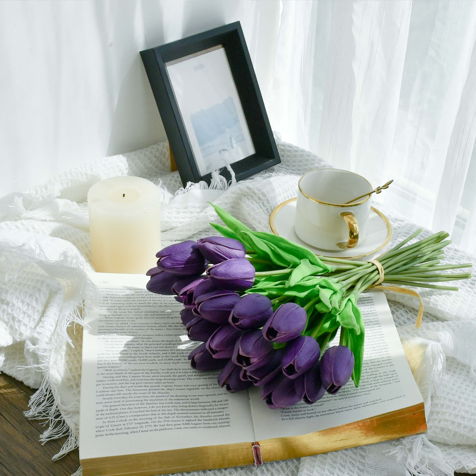 Mandy's 20pcs Purple Flowers Artificial Tulip Silk Fake Flowers 13.5&am