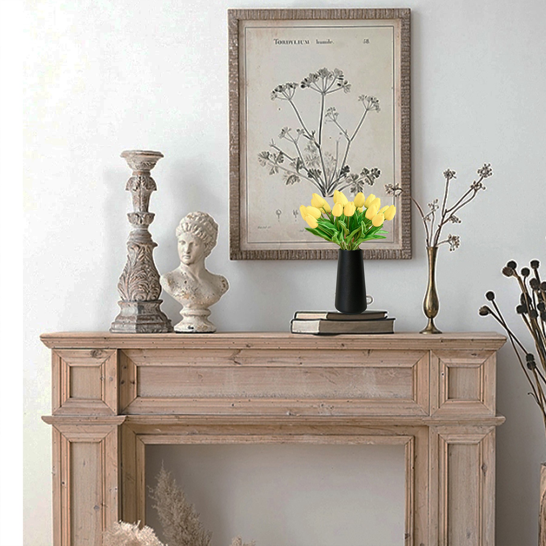Mandy's 20pcs Fake Light Yellow Flowers Artificial Tulip Silk Flowers 13.5"