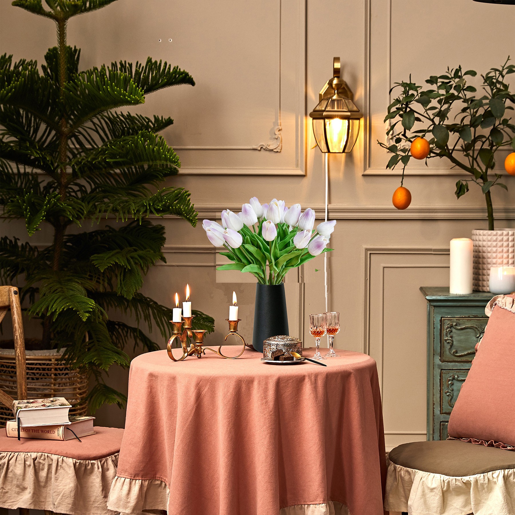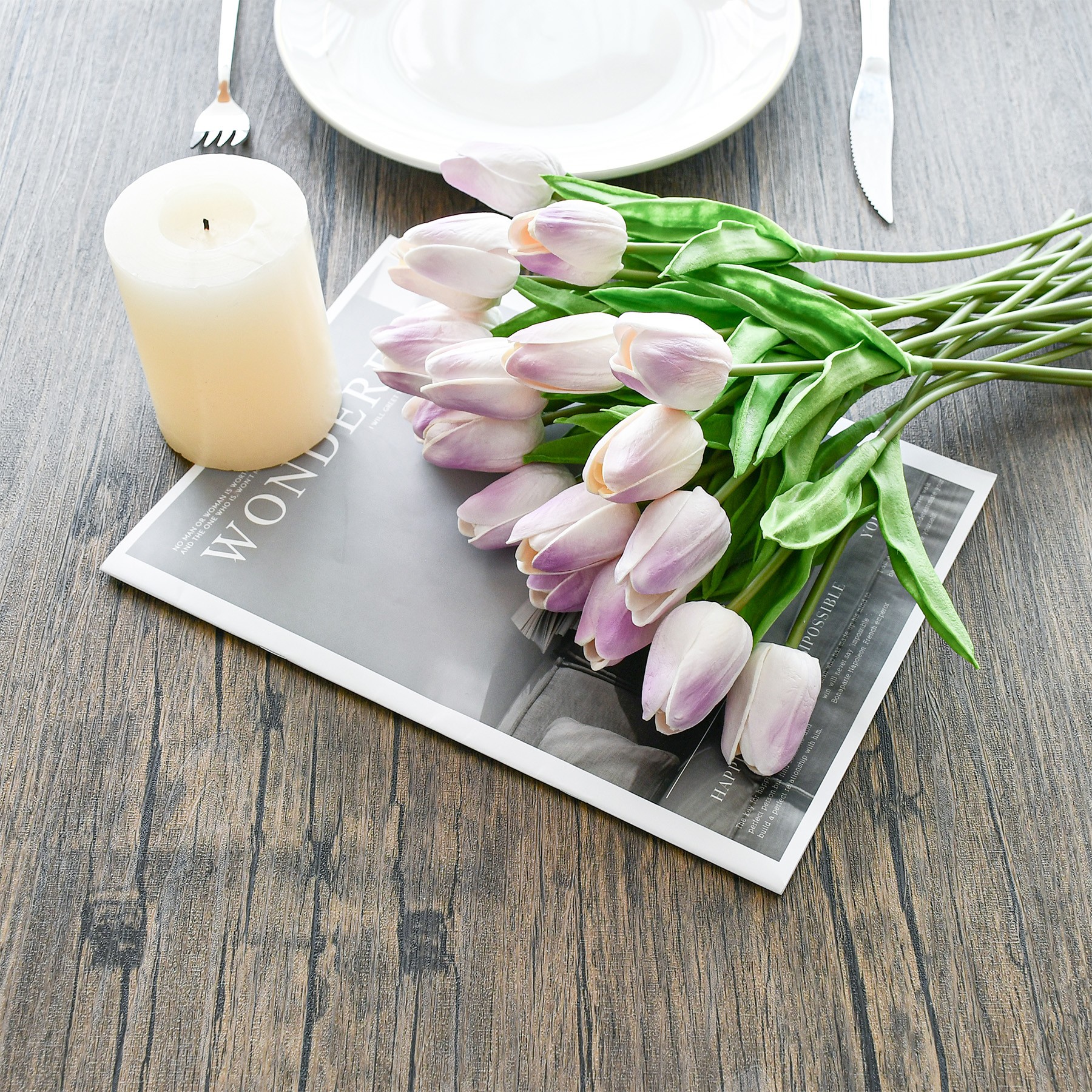 Mandy's 20pcs Light Purple Fake Flowers Artificial Tulip Silk Flowers 13.5"