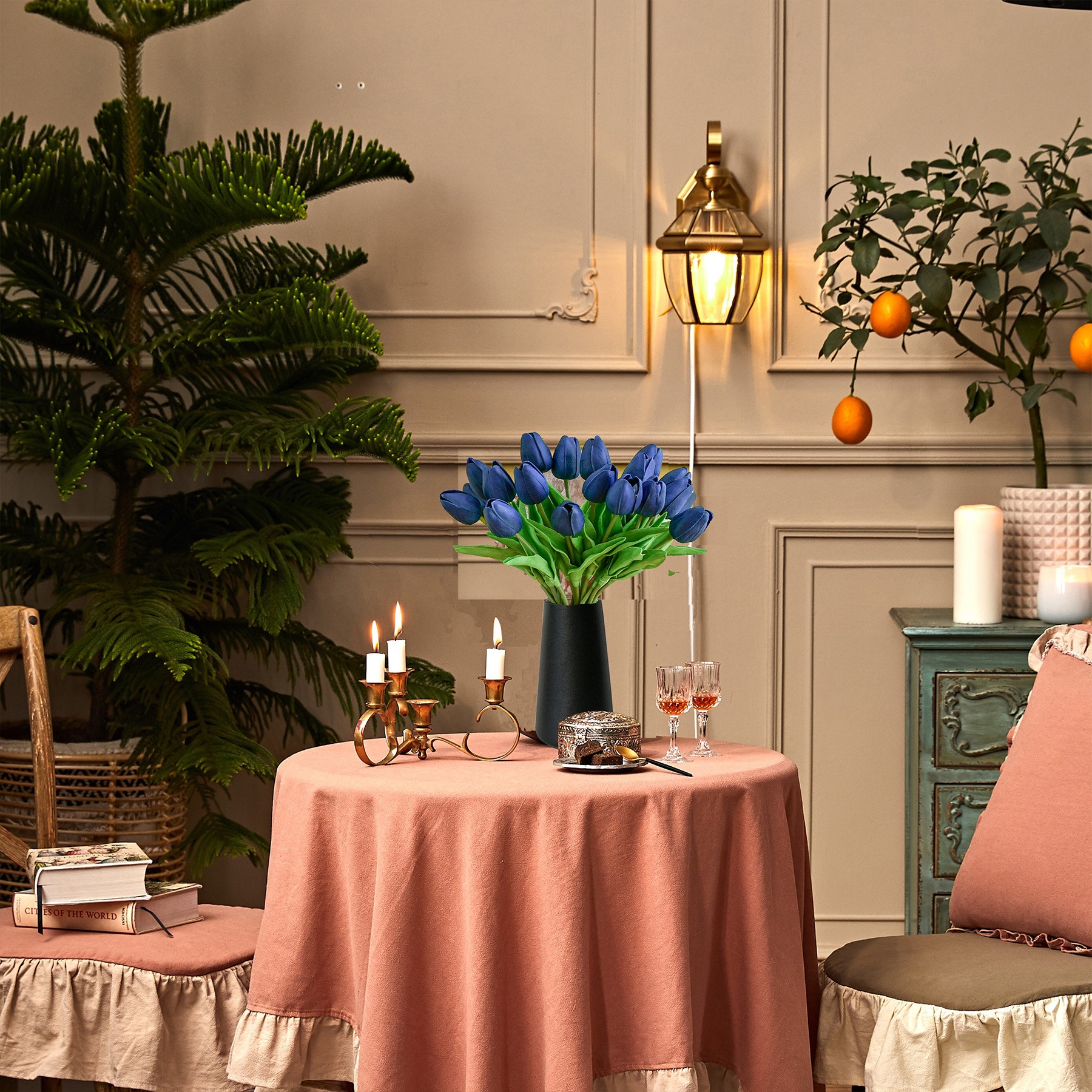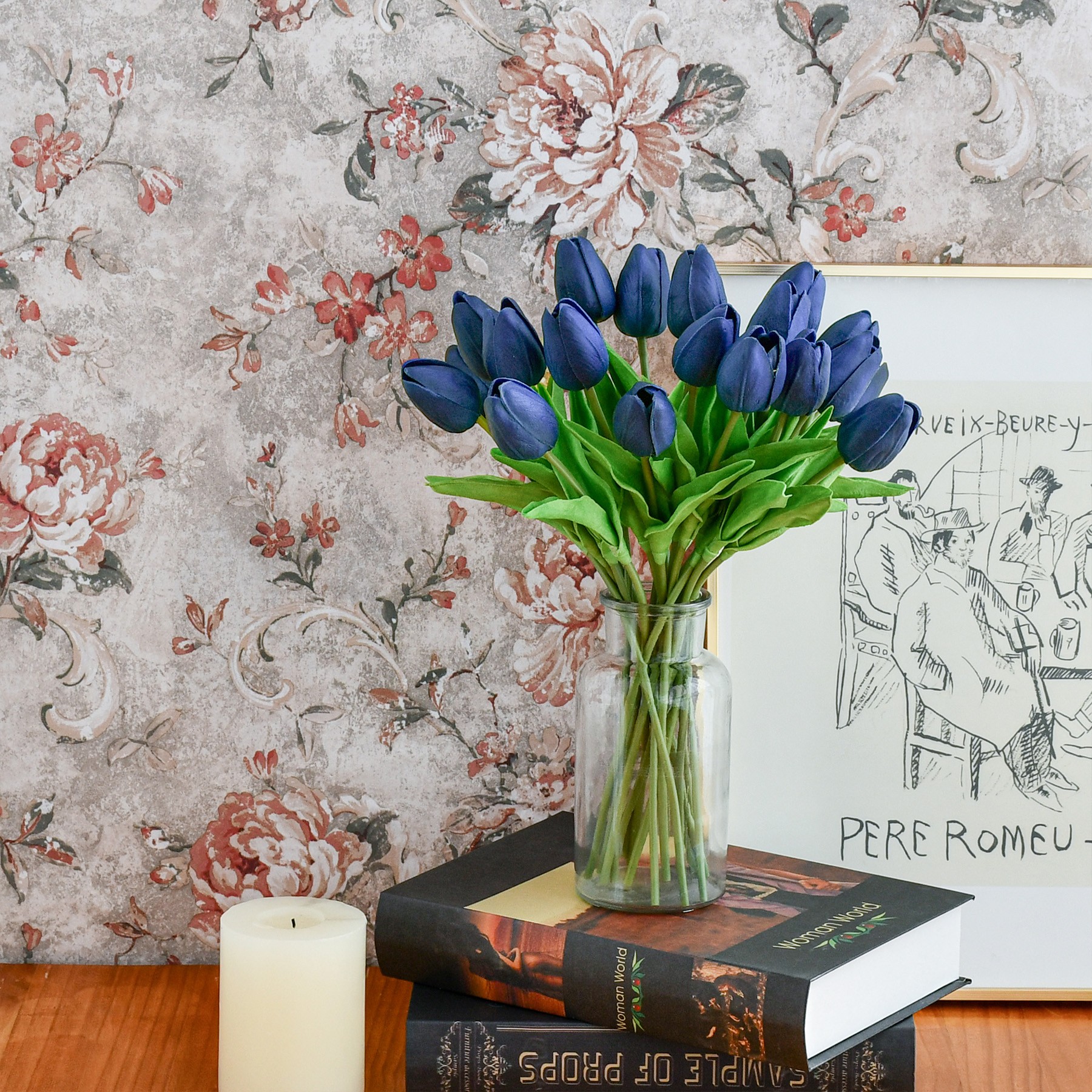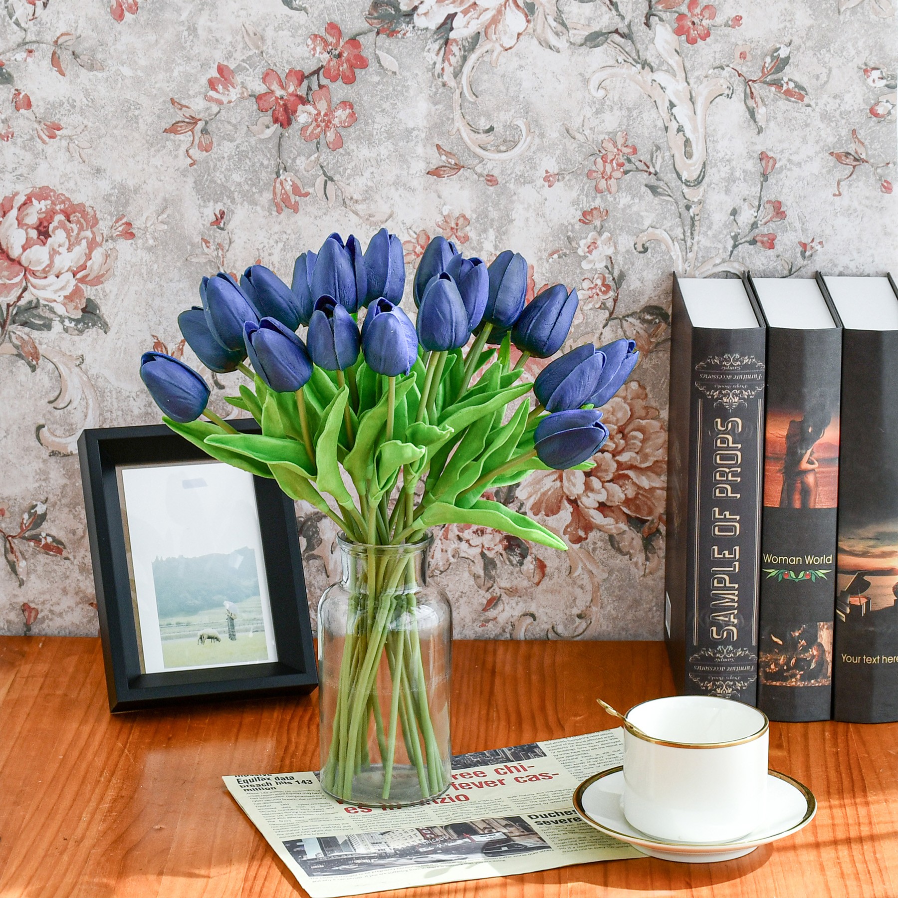 Mandy's 20pcs Navy Blue Fake Flowers Artificial Tulip Silk Flowers 13.5"