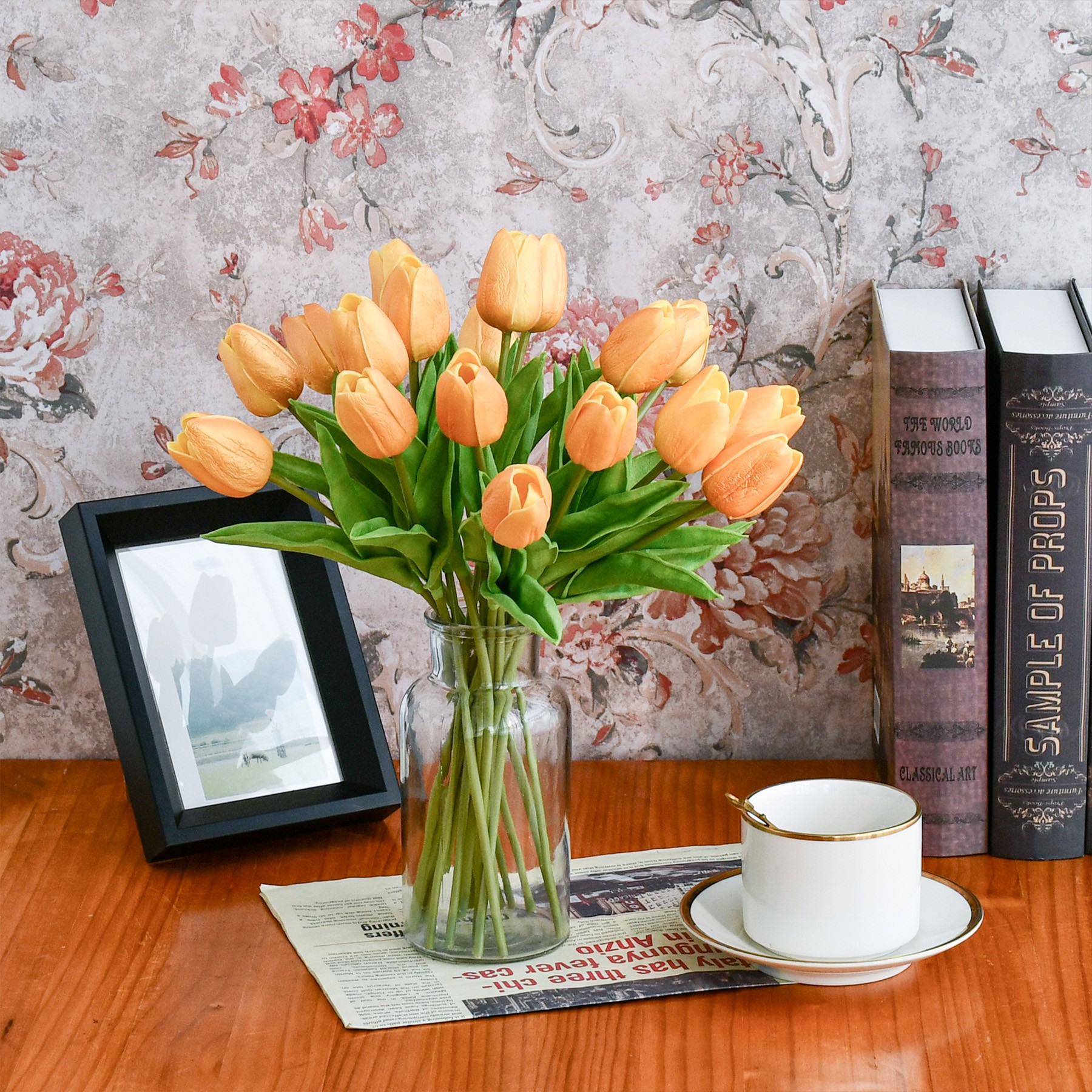 Mandy's 20pcs Gold Flowers Artificial Tulip Silk Fake Flowers 13.5"