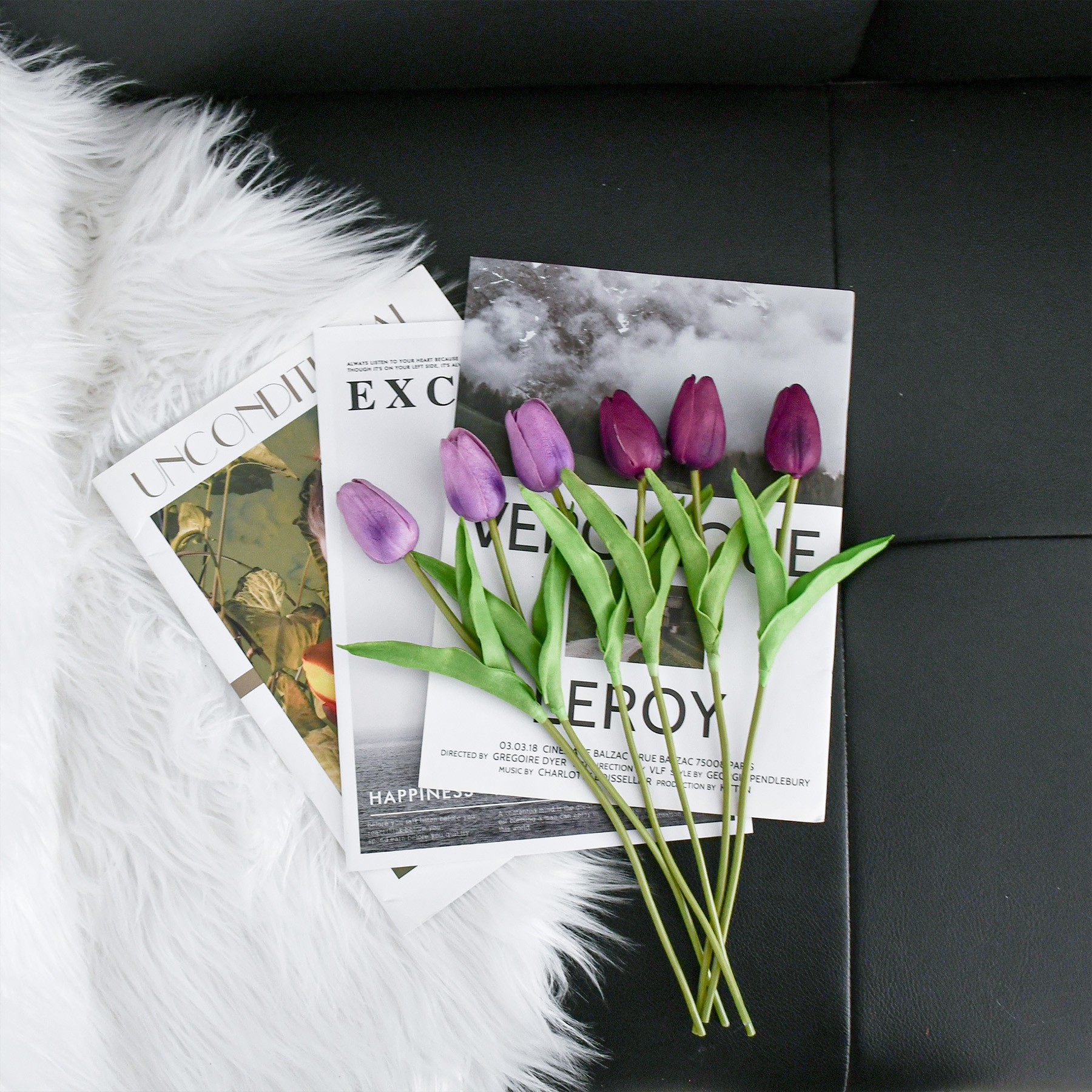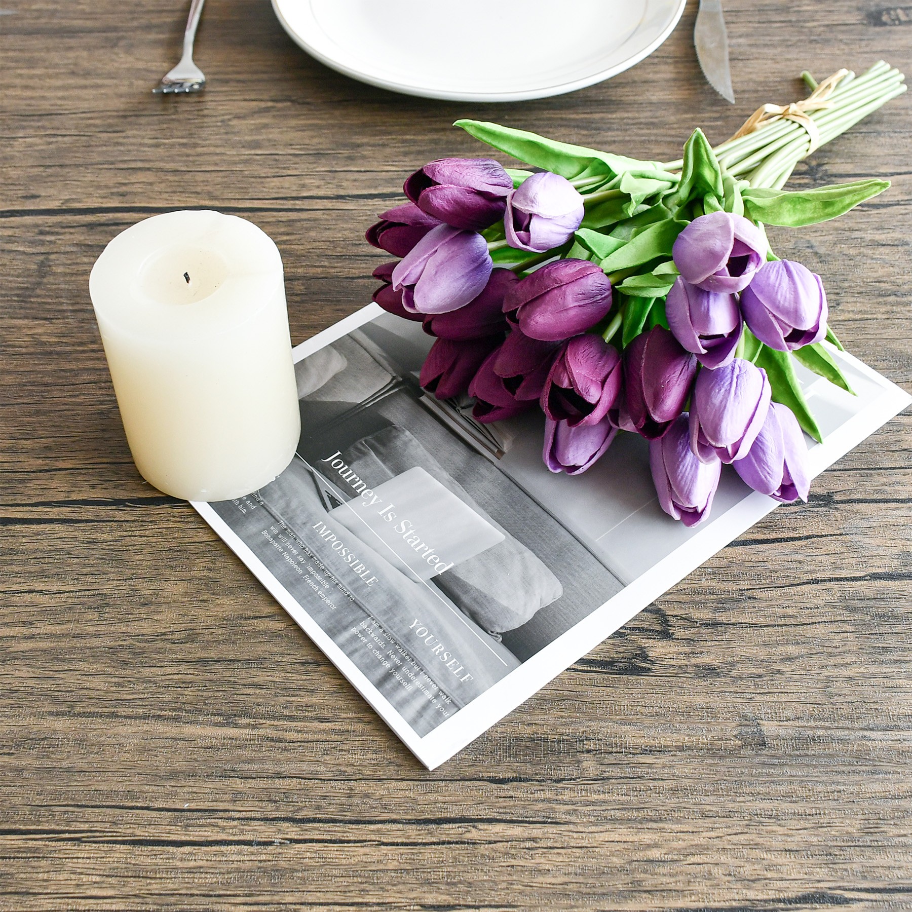 Mandy's 20pcs Shades of Purple Artificial Tulip Silk Fake Flowers 13.5"