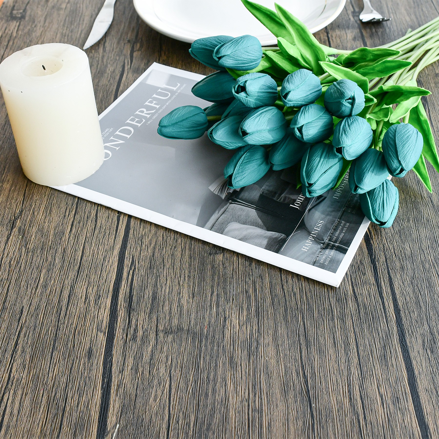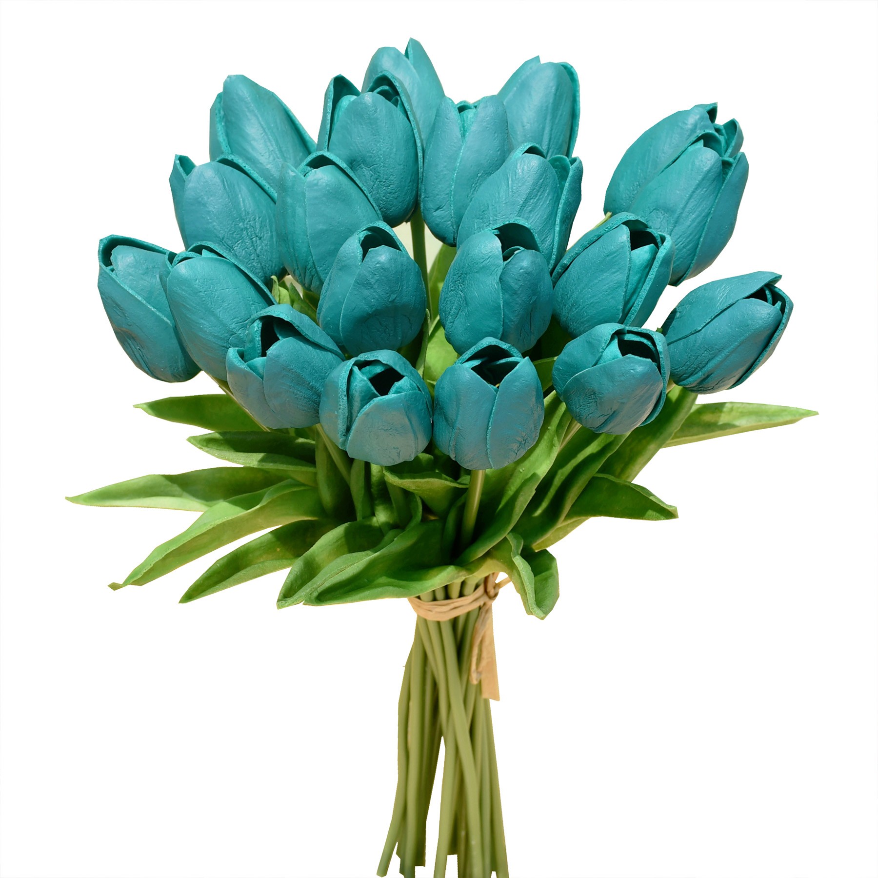 Mandy's 20pcs Teal Flowers Artificial Tulip Silk Fake Flowers 13.5"