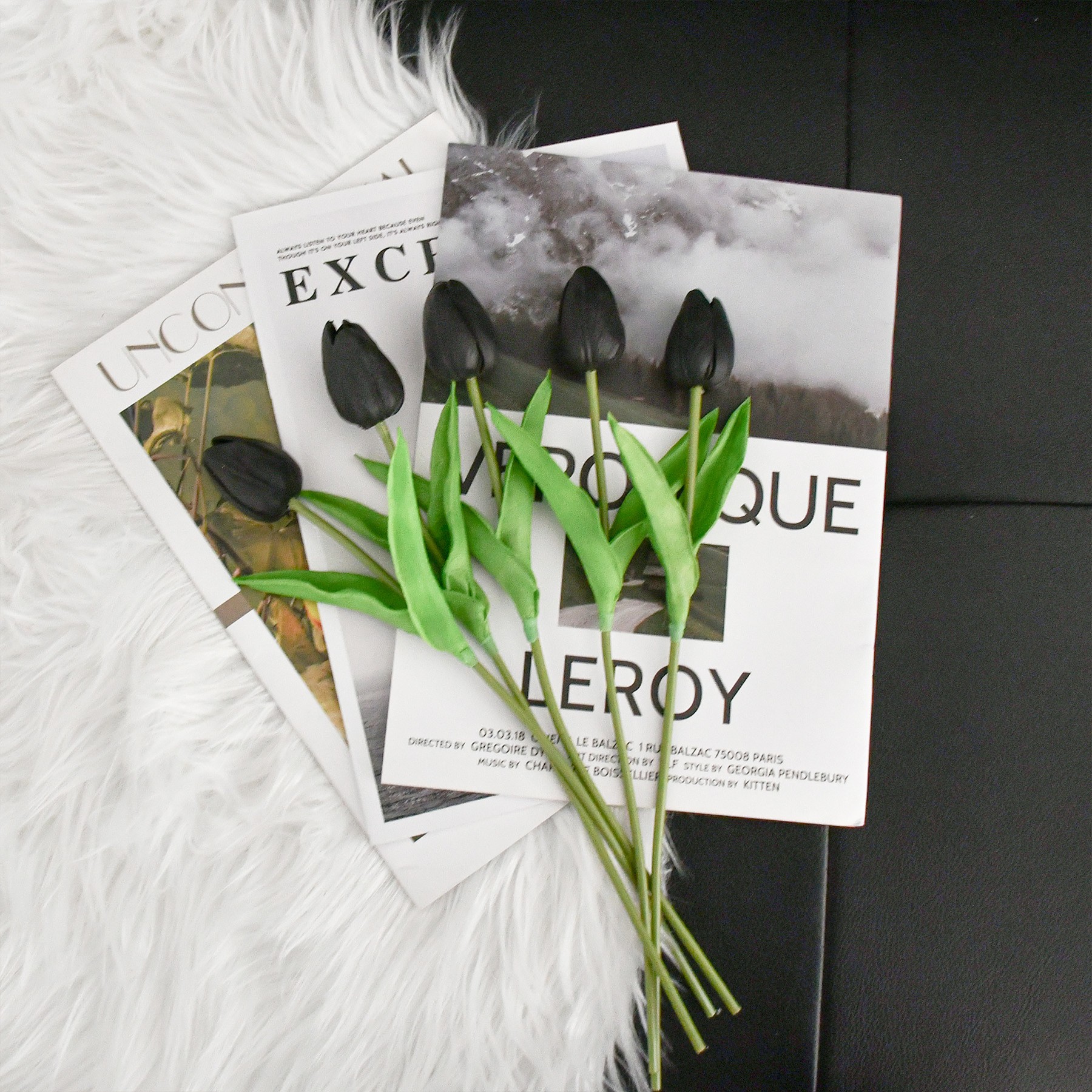 Mandy's 20pcs Black Artificial Tulip Silk Fake Flowers 13.5"