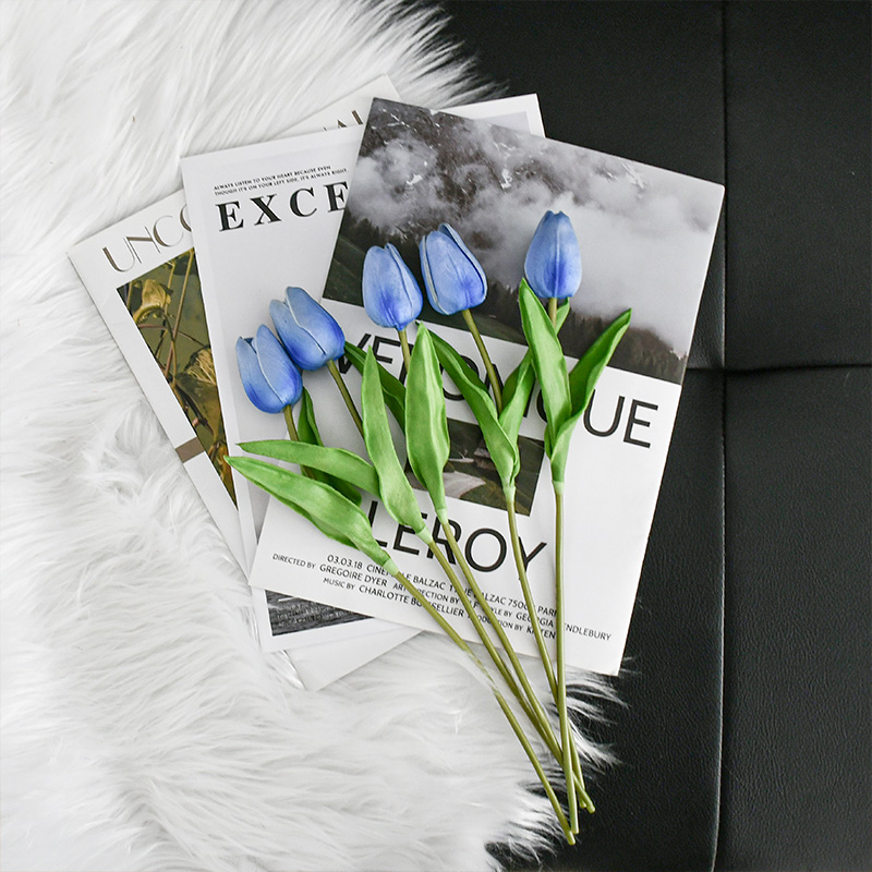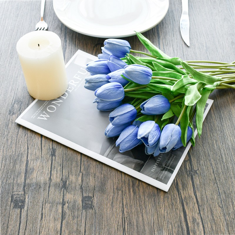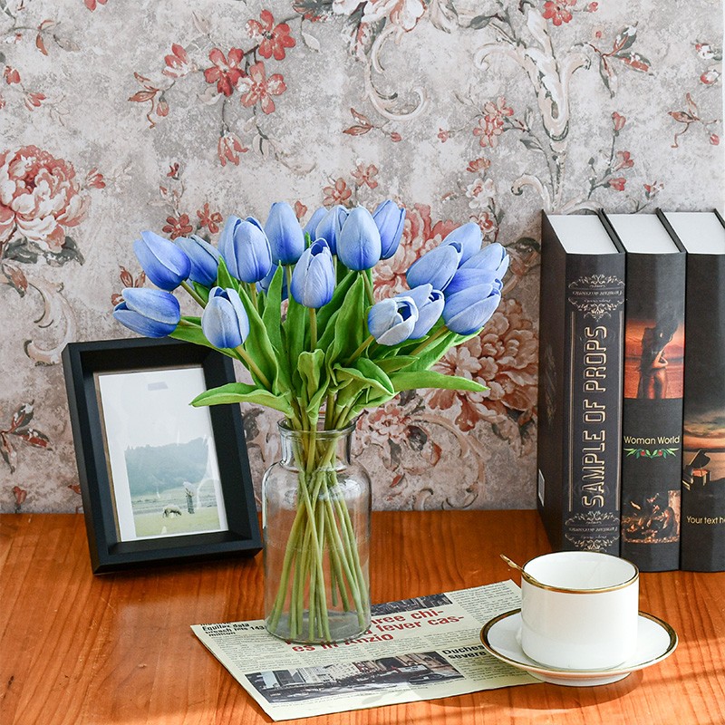 Mandy's 20pcs Light Blue Artificial Tulip Silk Fake Flowers 13.5"