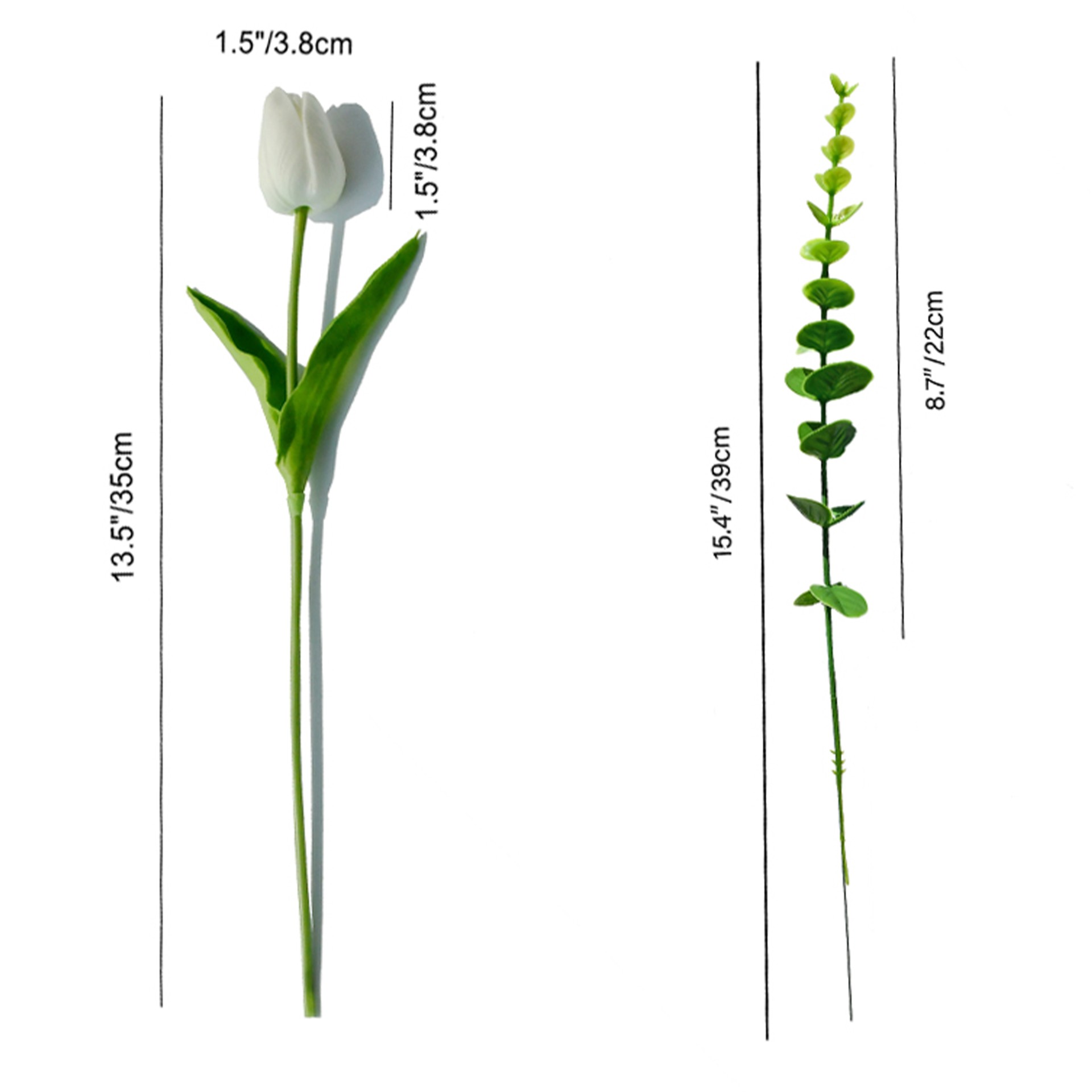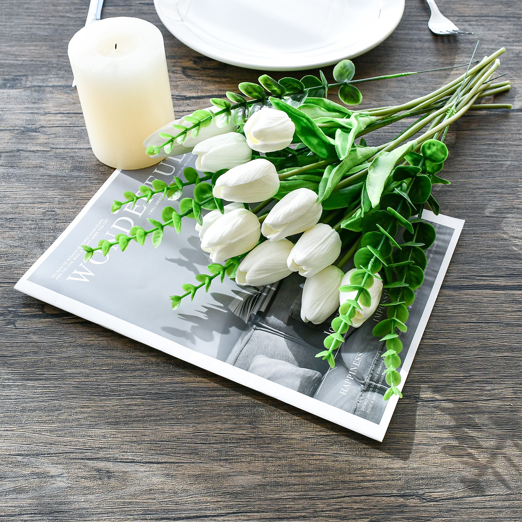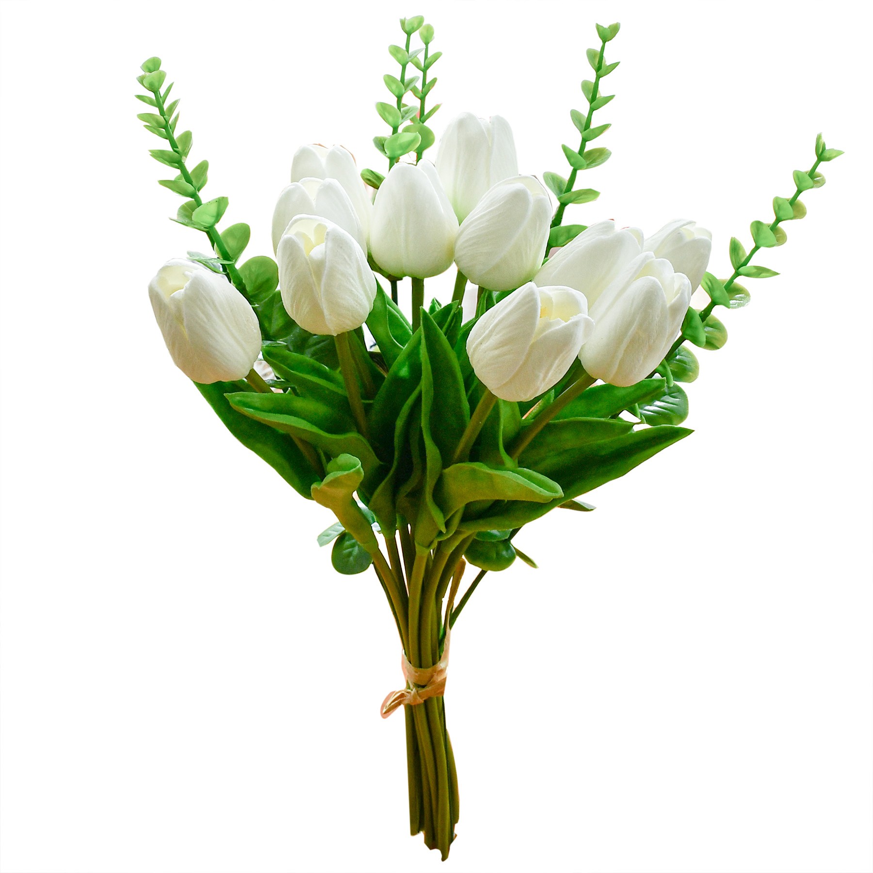 Mandy's Artificial White 12pcs White Tulips and 6pcs Eucalyptus