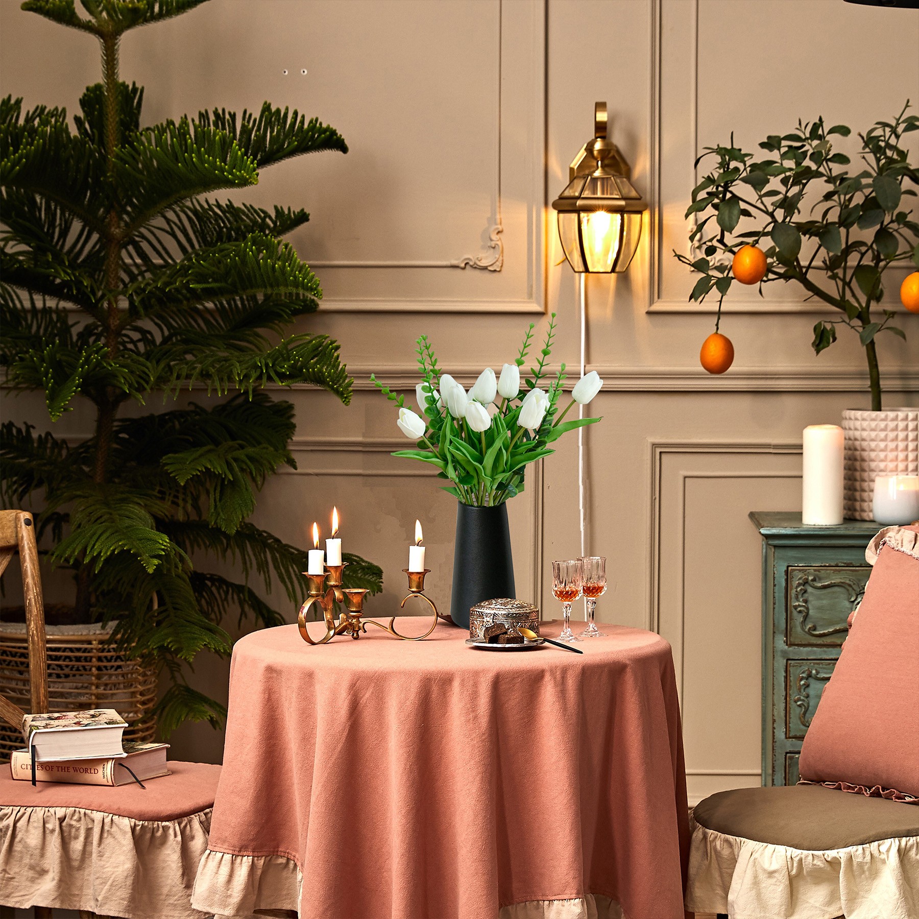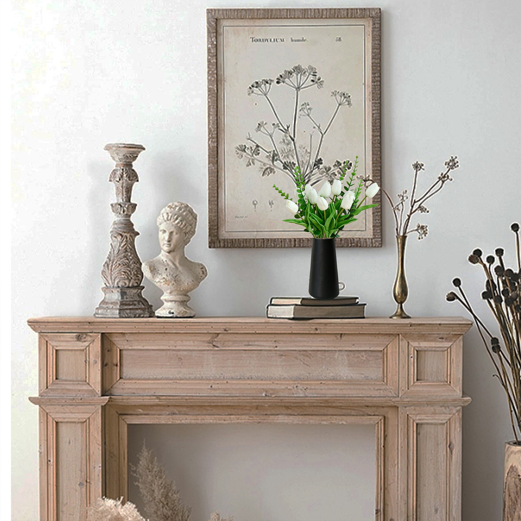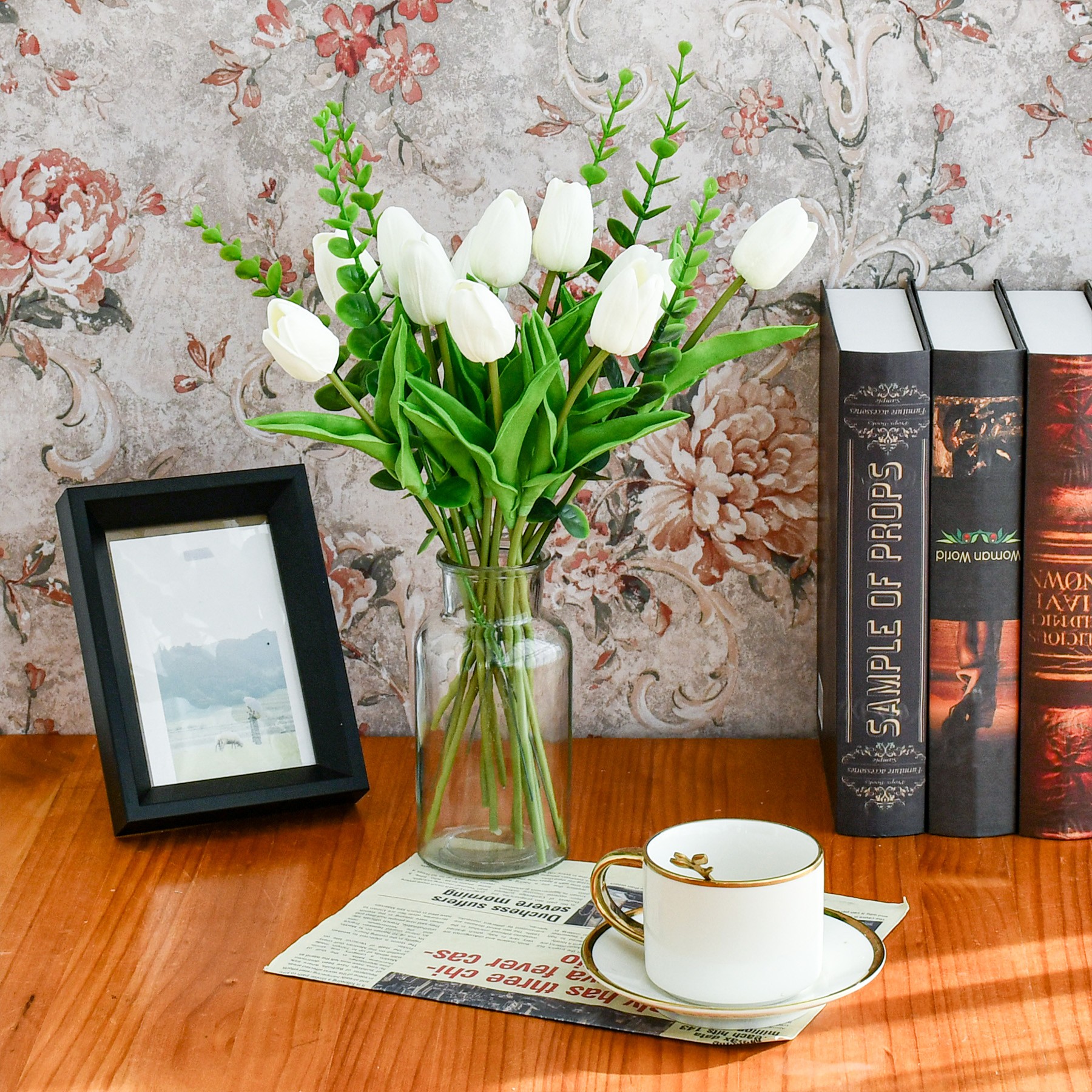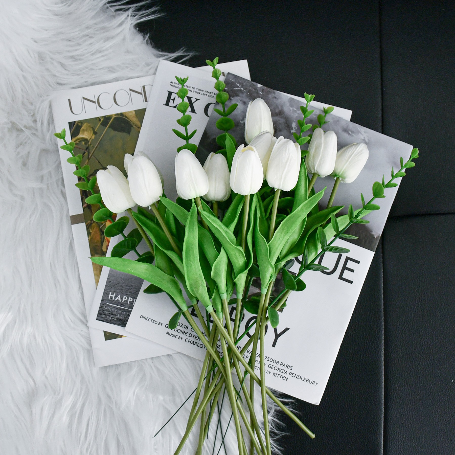 Mandy's Artificial White 12pcs White Tulips and 6pcs Eucalyptus